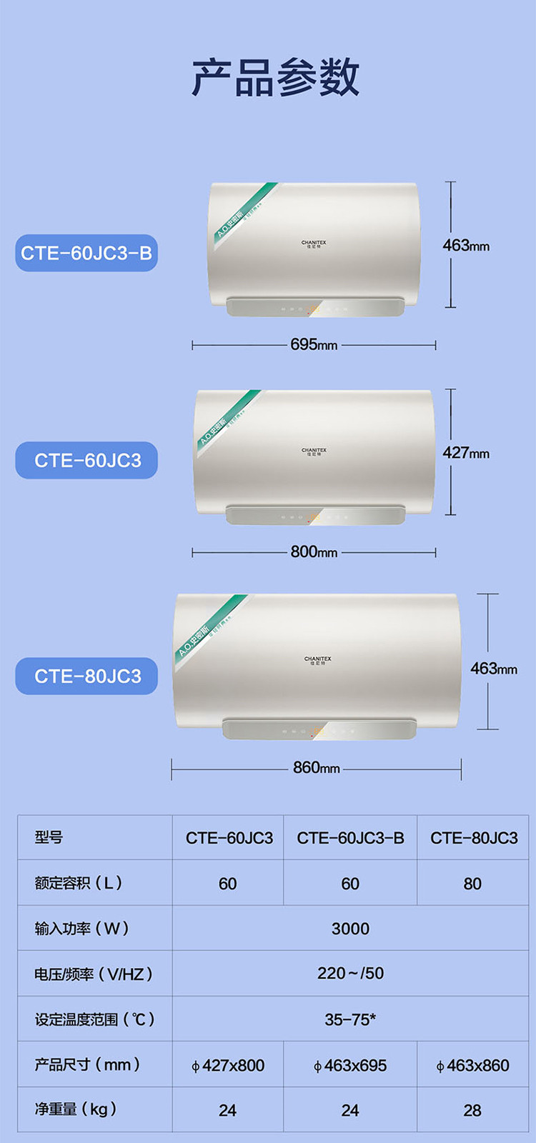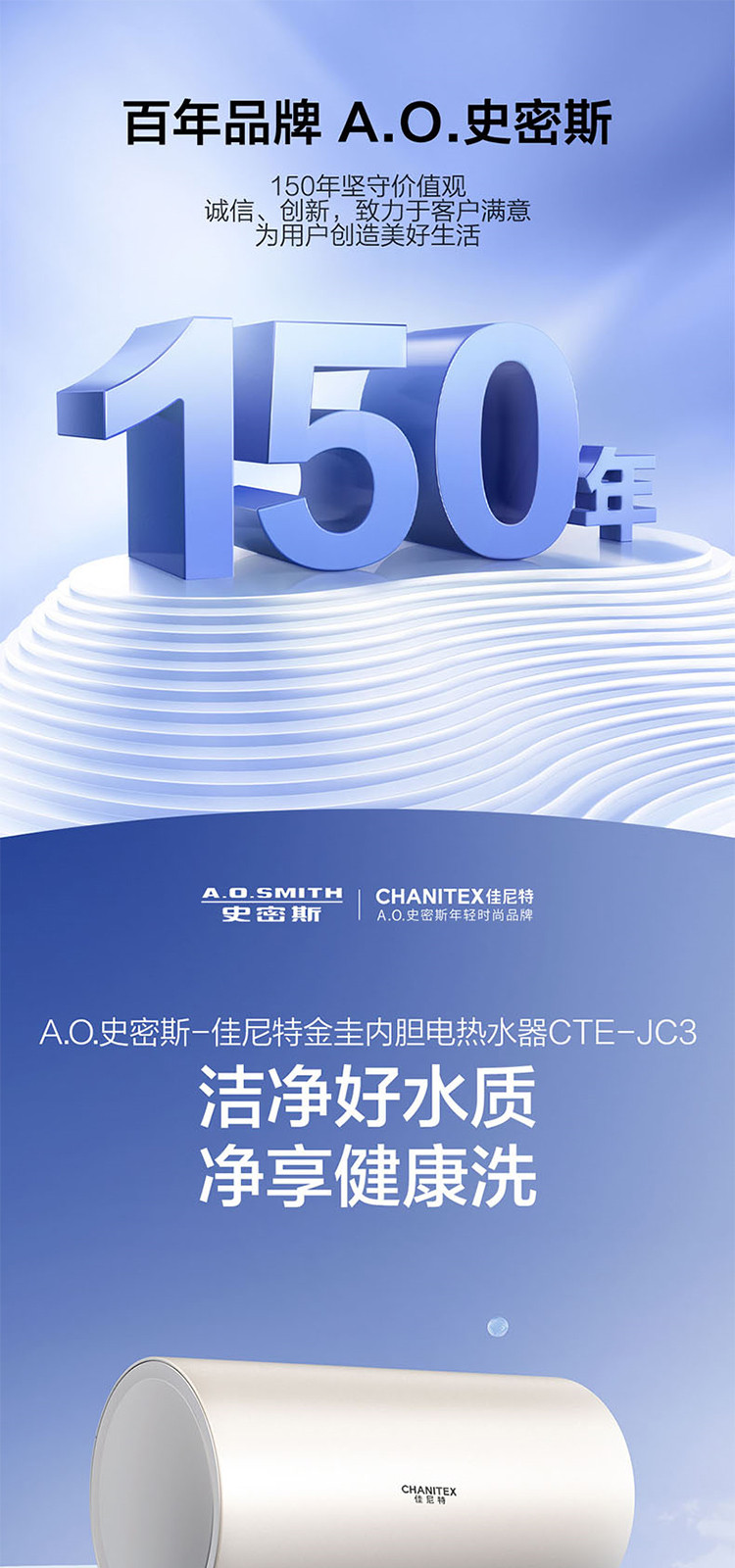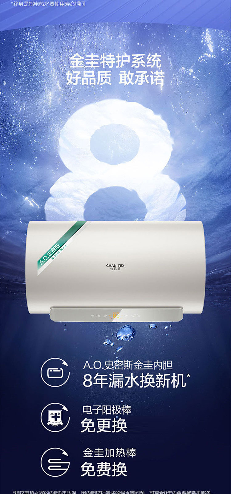 佳尼特 史密斯佳尼特电热水器JC3金圭内胆双棒分离速热免换镁棒免清洗