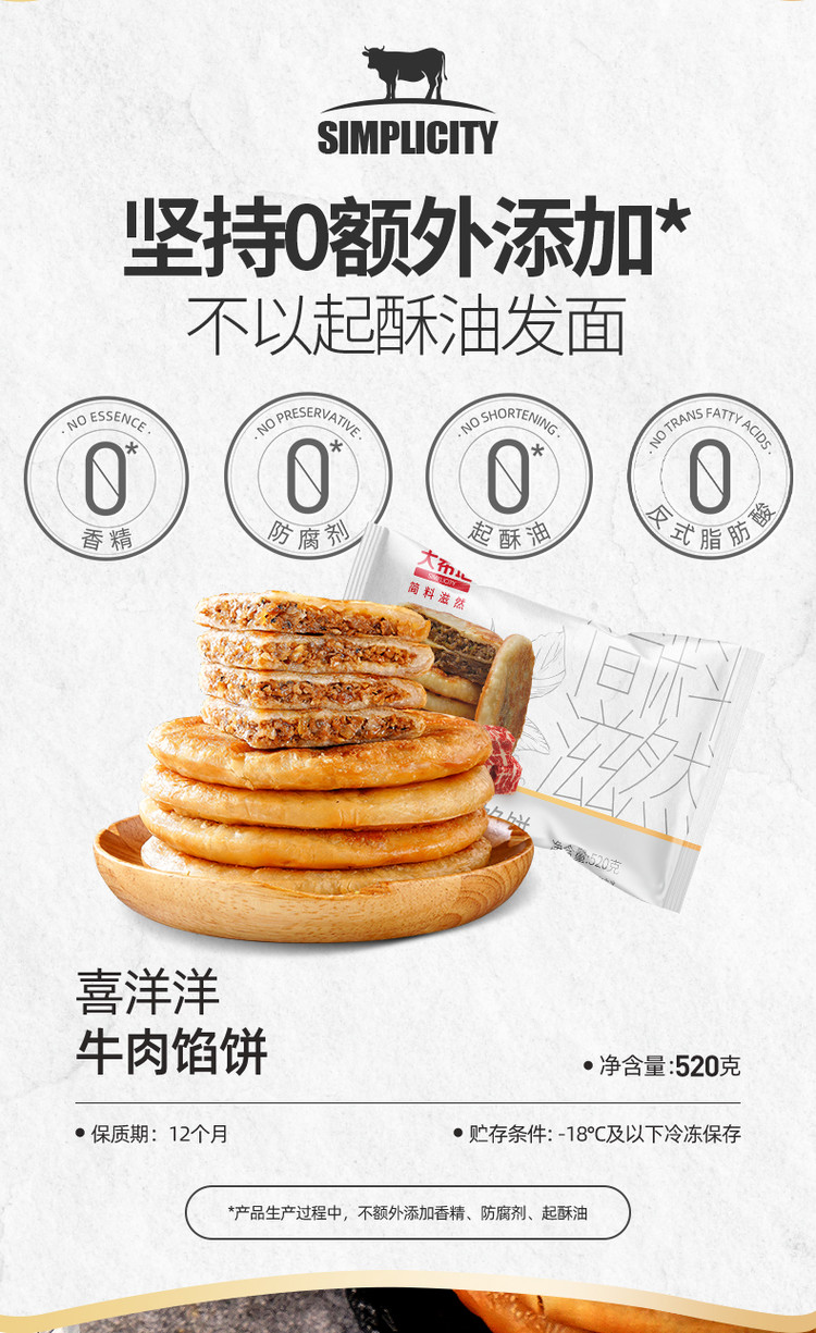 大希地 牛肉馅饼儿童营养早餐速食520g/袋多规格半成品营养早饭手抓饼