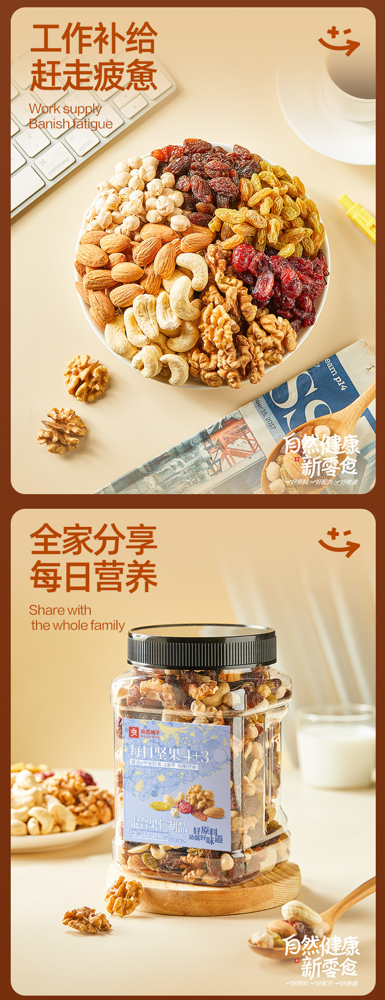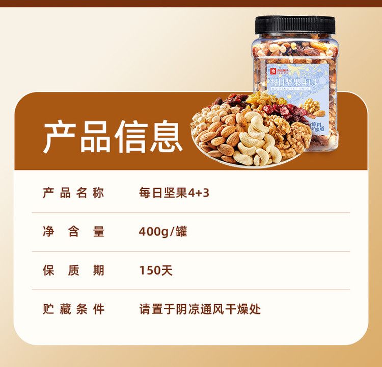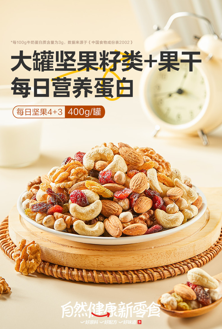 良品铺子 【罐装每日坚果400g】孕妇健康零食4+3坚果果干混合果仁腰果