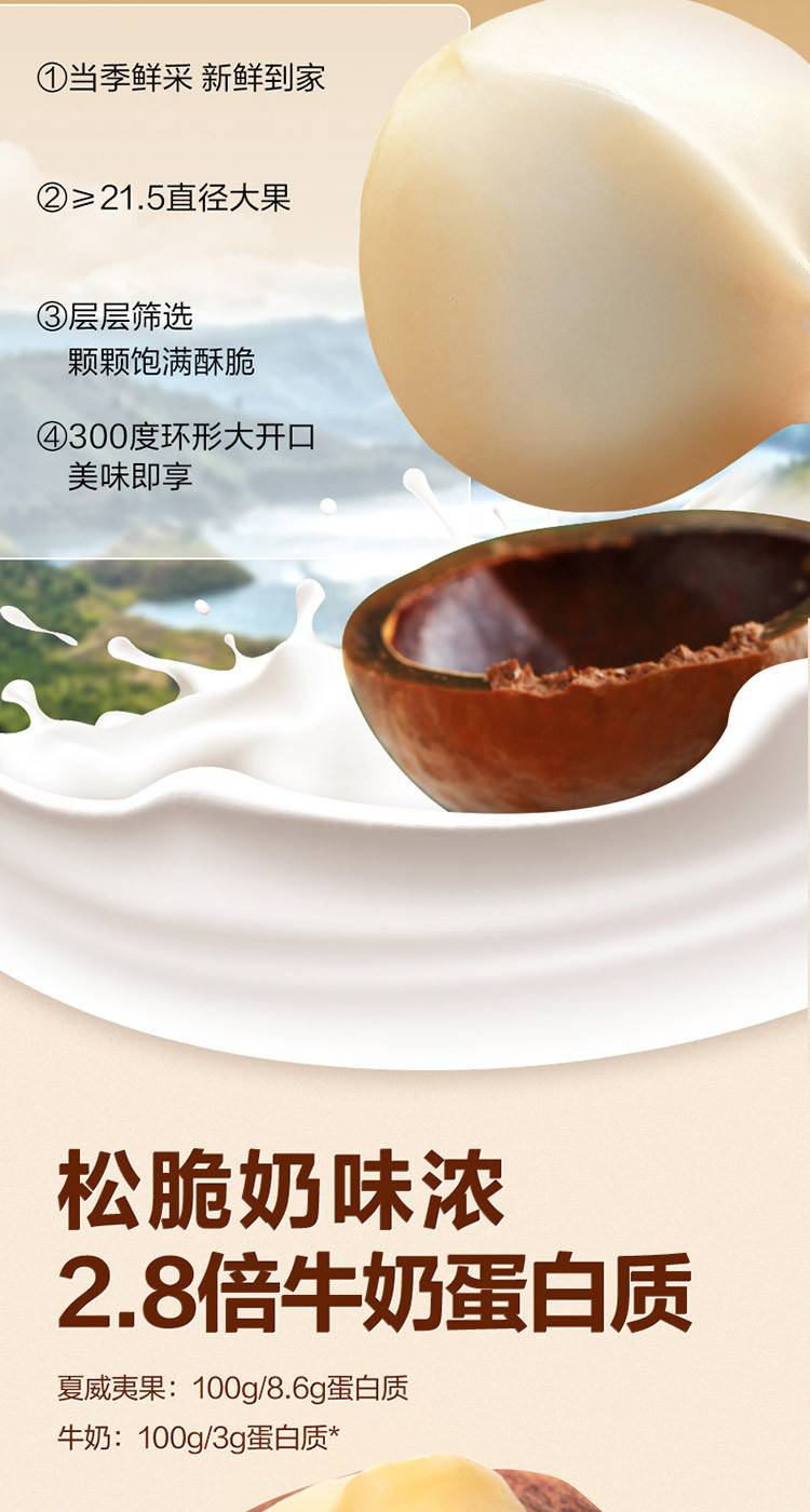 这款夏威夷果也太赞了!500克的大包装分量超足,每一颗都颗粒饱满,没有空壳坏果。外壳开口很轻松,用附赠的开果器一撬就开,果仁奶白饱满,奶香浓郁还带着淡淡的盐味,口感酥脆不腻。追剧的时候吃太合适了,性价比超高,已经回购好几次了!