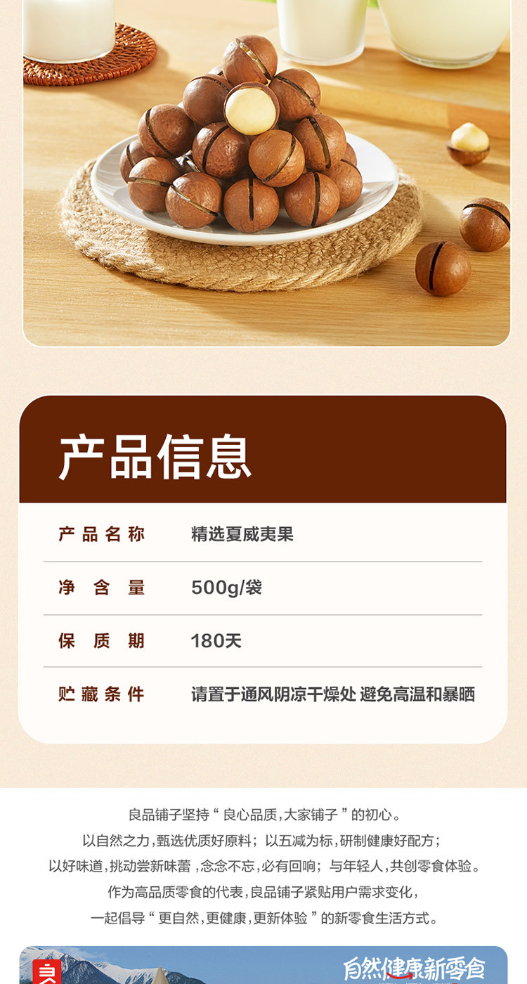 良品铺子 【一斤大份量】夏威夷果500g袋装孕妇儿童休闲零食小吃