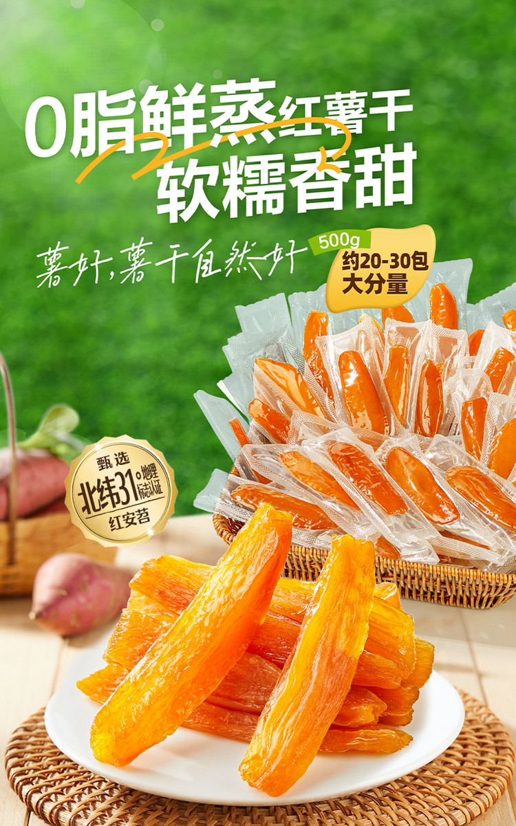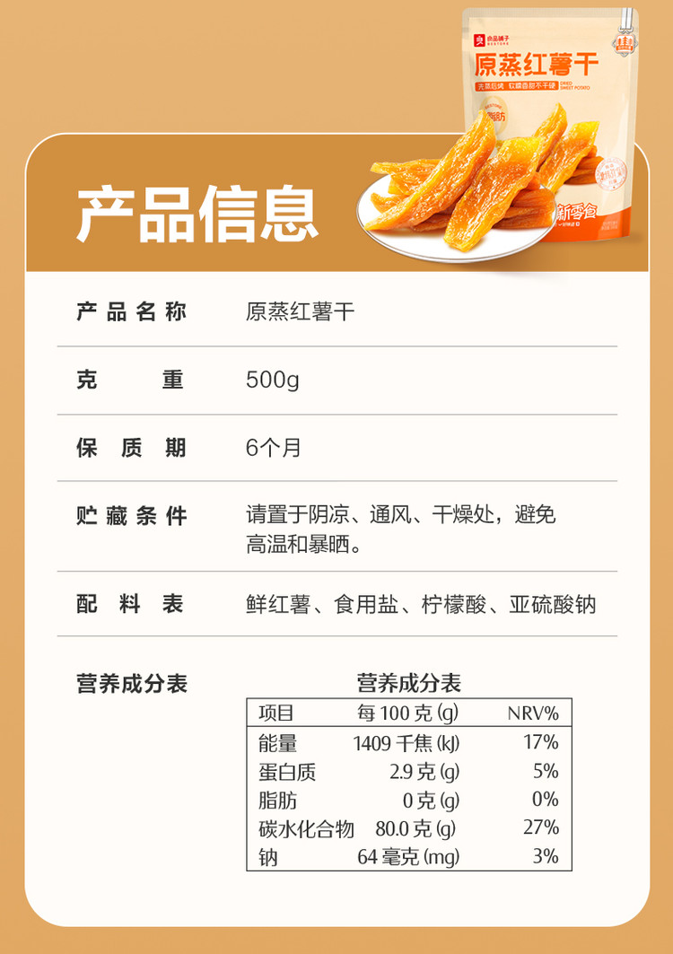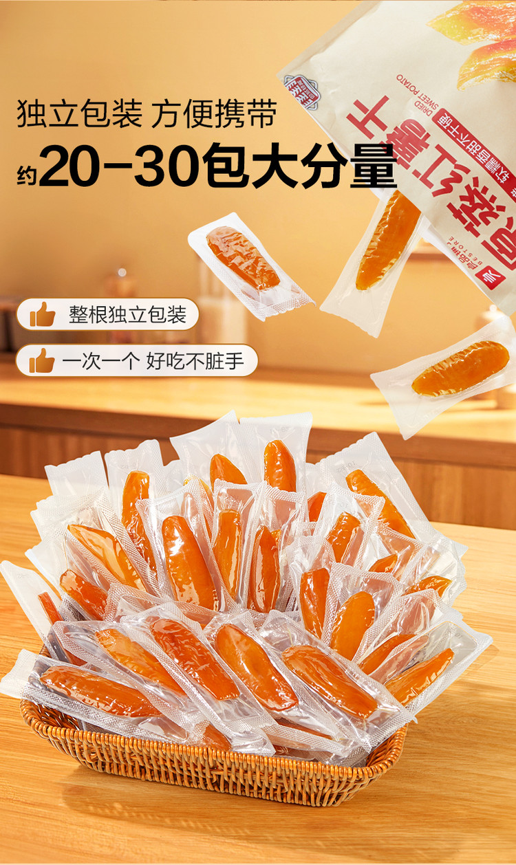 良品铺子 【一斤/独立包装】原蒸红薯干500g无蔗糖零食小吃低脂健康