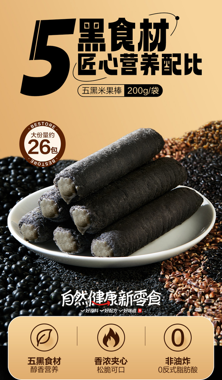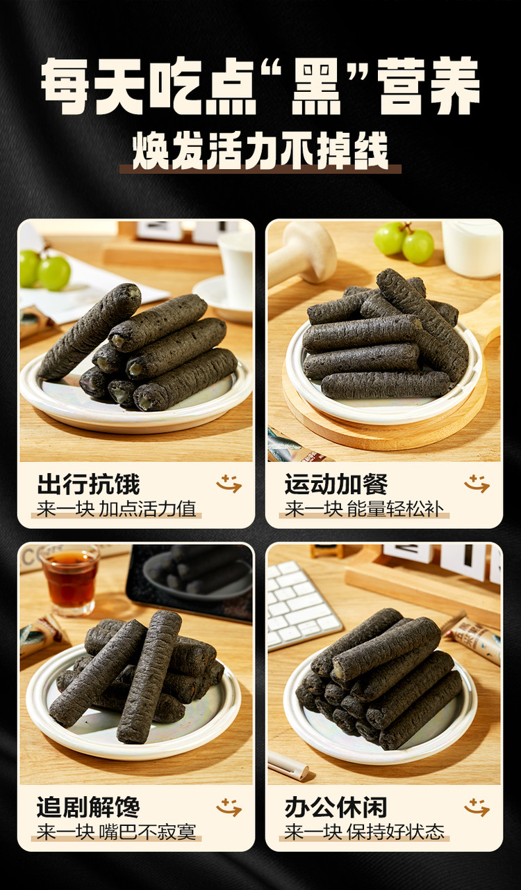 良品铺子 【任选】【约26根】五黑棒芝麻酱夹心卷糕点代餐零食健康米果卷