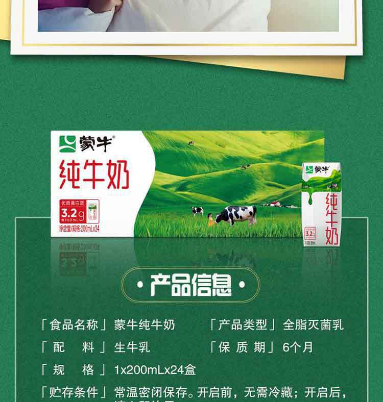蒙牛 牛奶整箱纯奶全脂灭菌乳钻包200ml*24包蒙牛早餐奶