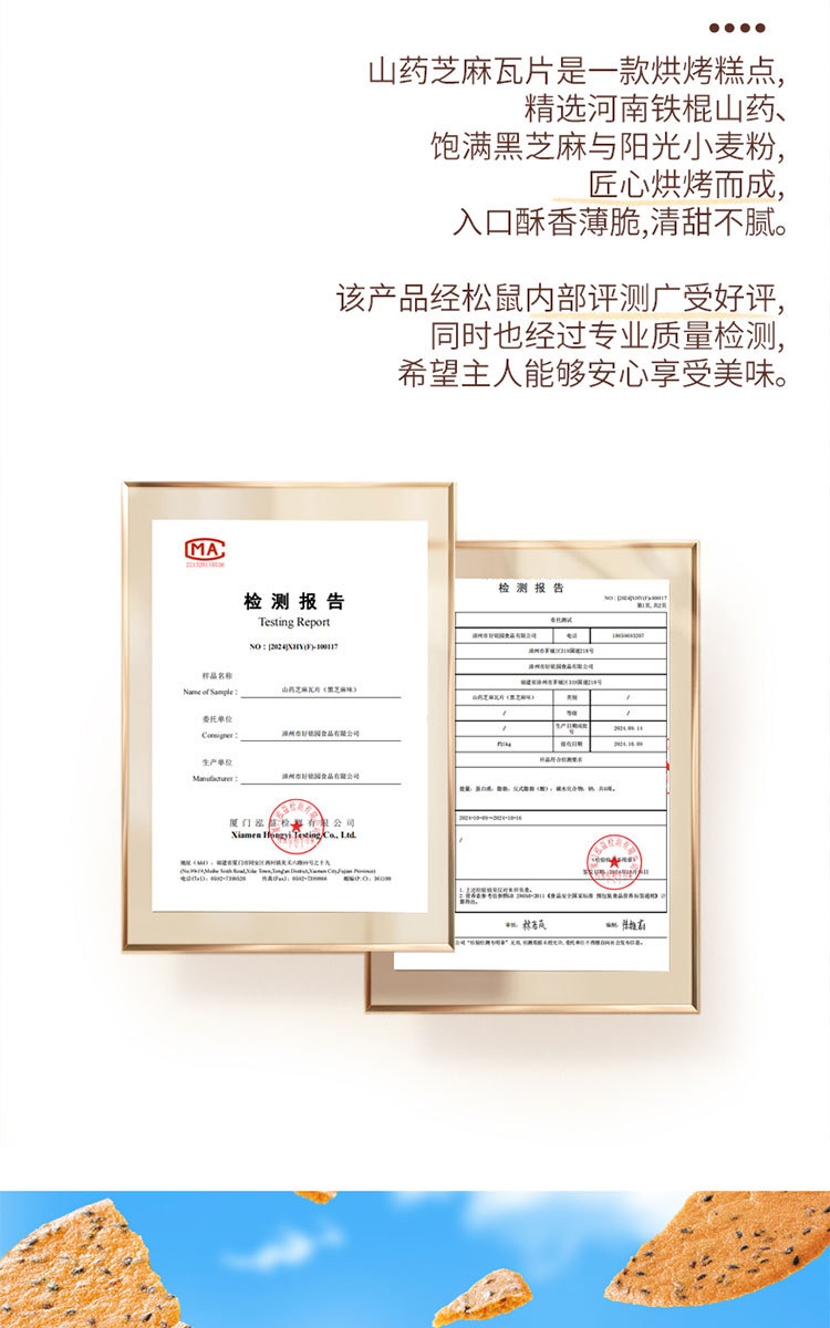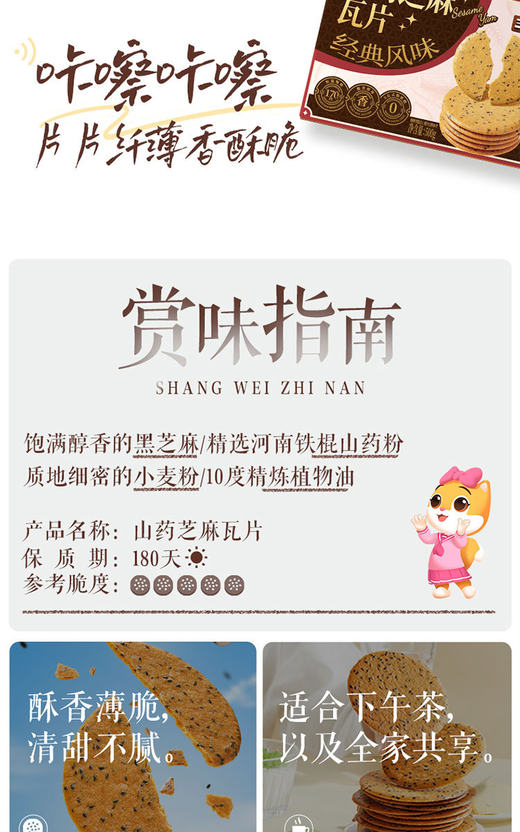 三只松鼠 【山药芝麻瓦片/500g】饼干中式糕点心下午茶零食休闲食品