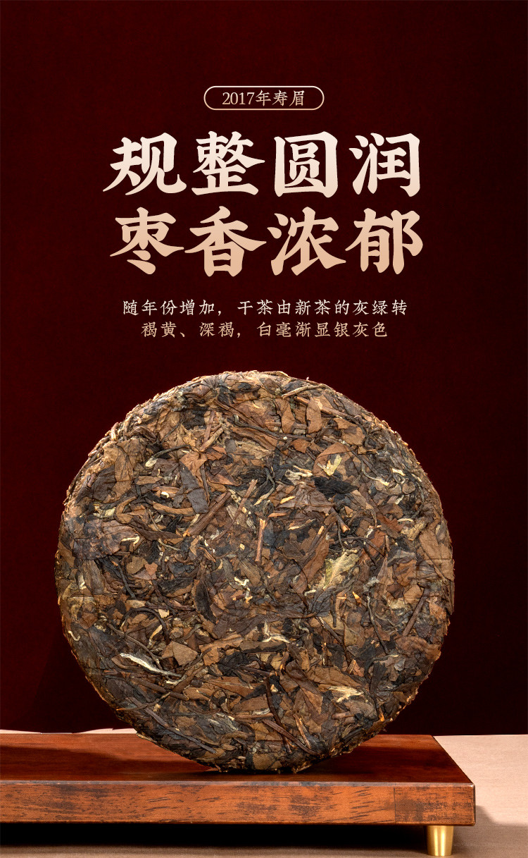 如意韵 正宗福鼎老白茶茶饼2017年枣香寿眉陈年老茶叶礼盒装送礼长辈高档