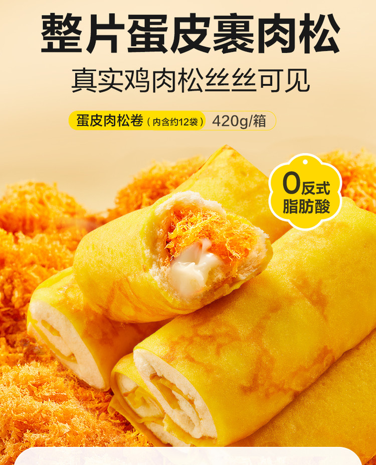 良品铺子 【约含12袋】蛋皮肉松卷420g面包早餐营养健康肉松蛋糕办公室零食