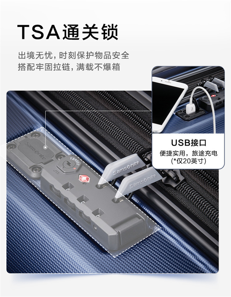 新秀丽 行李箱商务拉杆箱大容量登机箱20寸男士旅行箱QY8