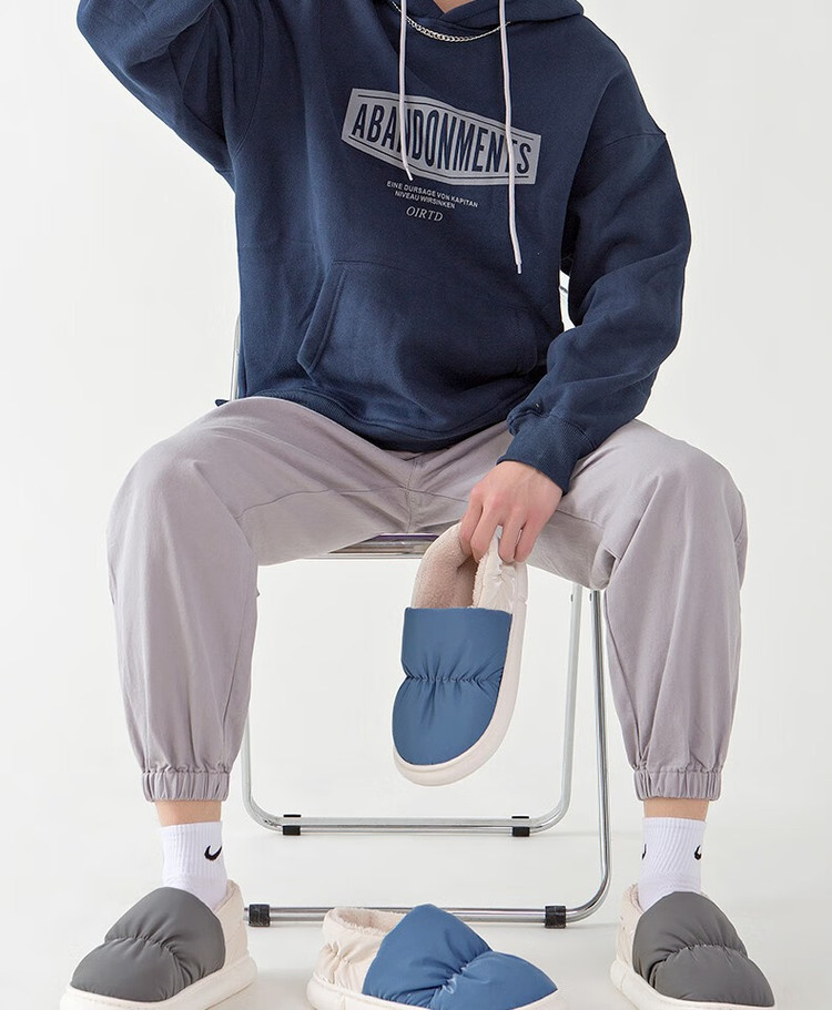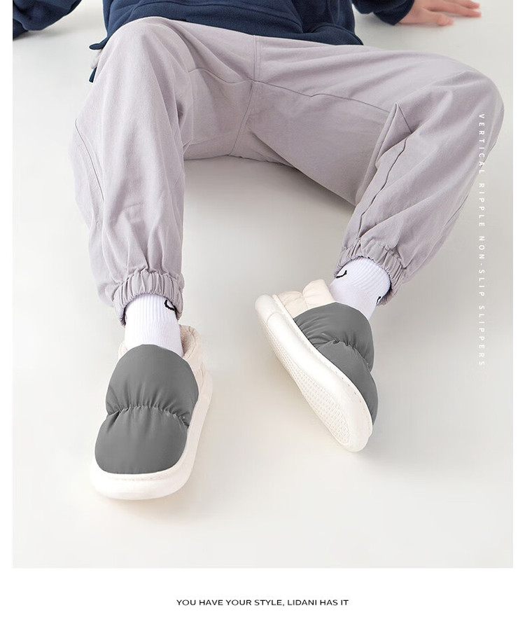 OIU 【断码处理】防水棉拖鞋男士冬季包跟居家情侣棉鞋女冬加绒毛拖鞋
