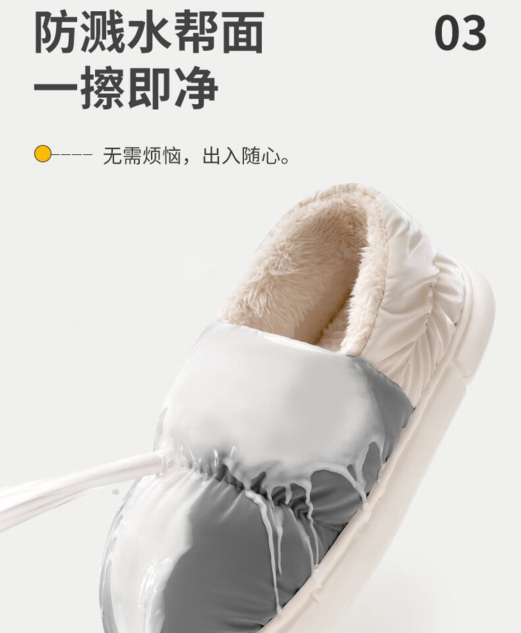 鞋面是防水的。里面有绒毛很暖和。鞋底不是那种特别软,这样对脚不会有伤害。购买两双,我和家人一人一双, 两款颜色都好看,非常满意。