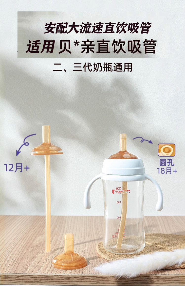 安配 大流速吸管适用贝亲直饮吸管三代奶瓶配件宽口径ppsu玻璃学饮奶嘴