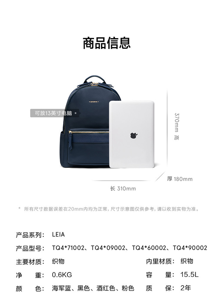 新秀丽 人气高颜值女士双肩包时尚通勤轻便旅行书包电脑包TQ4