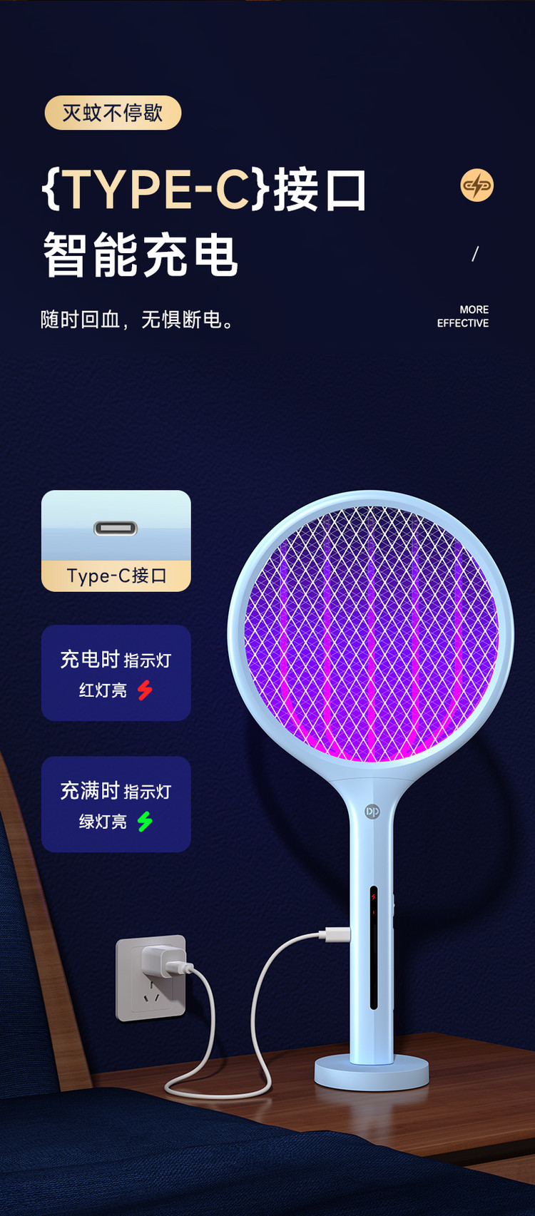 DP 久量二合一灭蚊器紫光诱蚊自动灭蚊电蚊拍充电苍蝇拍家用强力