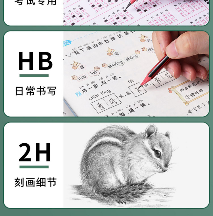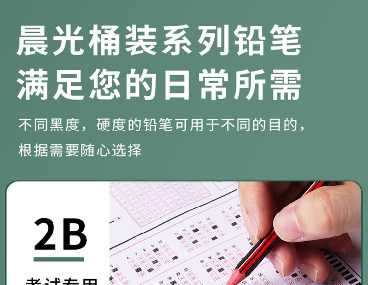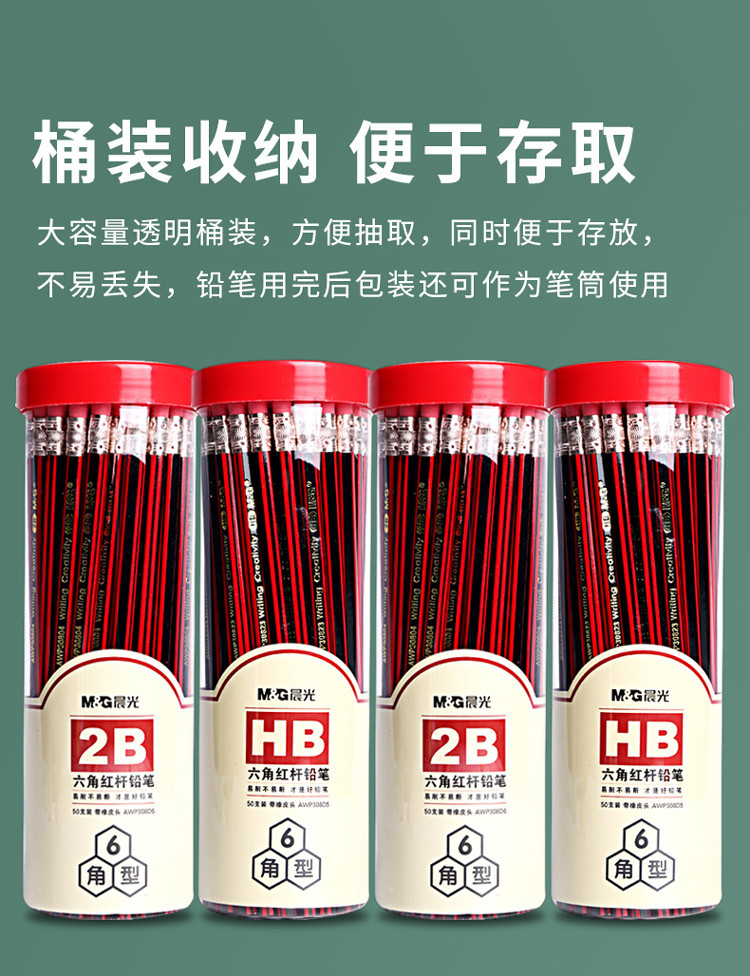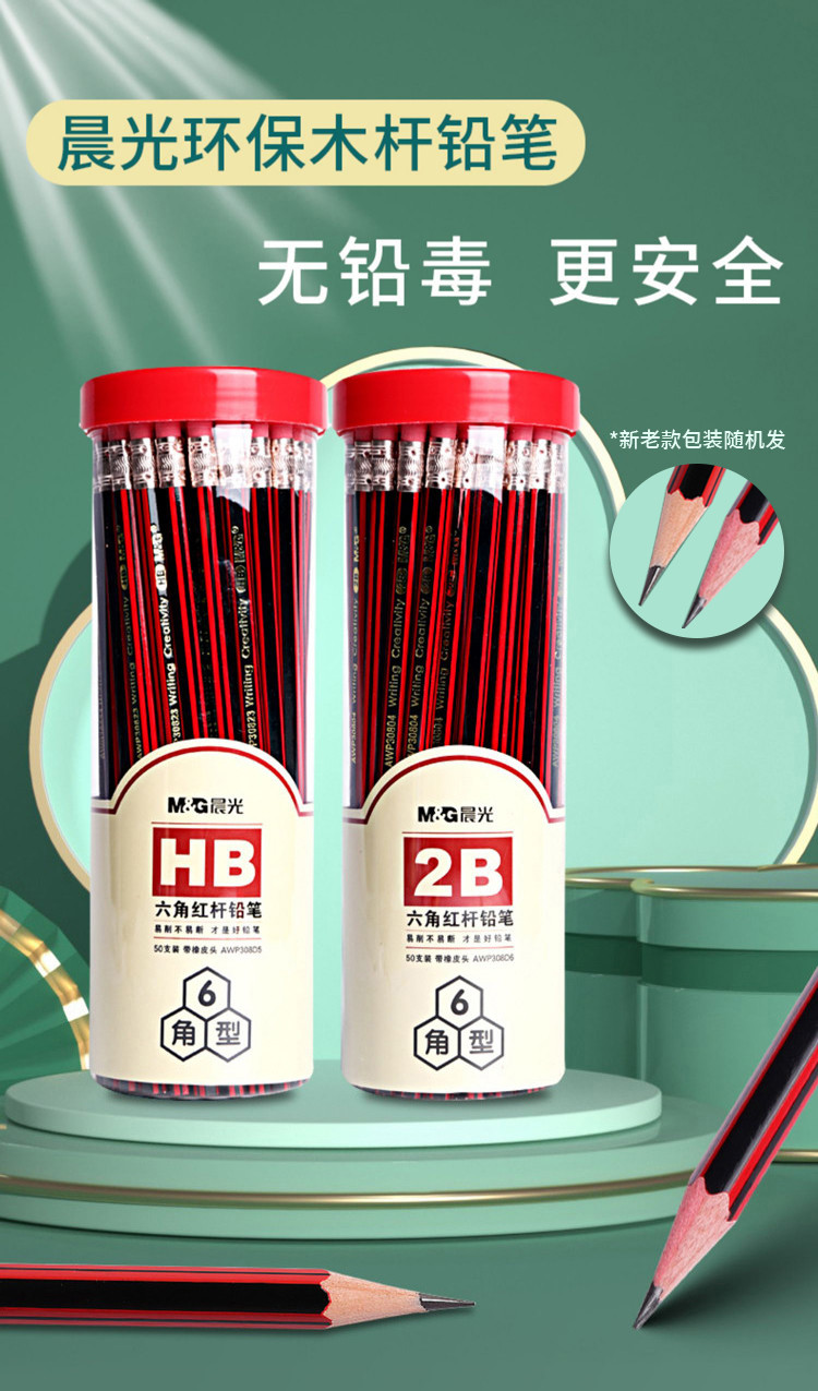 晨光 红黑抽条HB铅笔经典学生书写六角型带橡皮头铅笔素描绘图2B涂卡笔