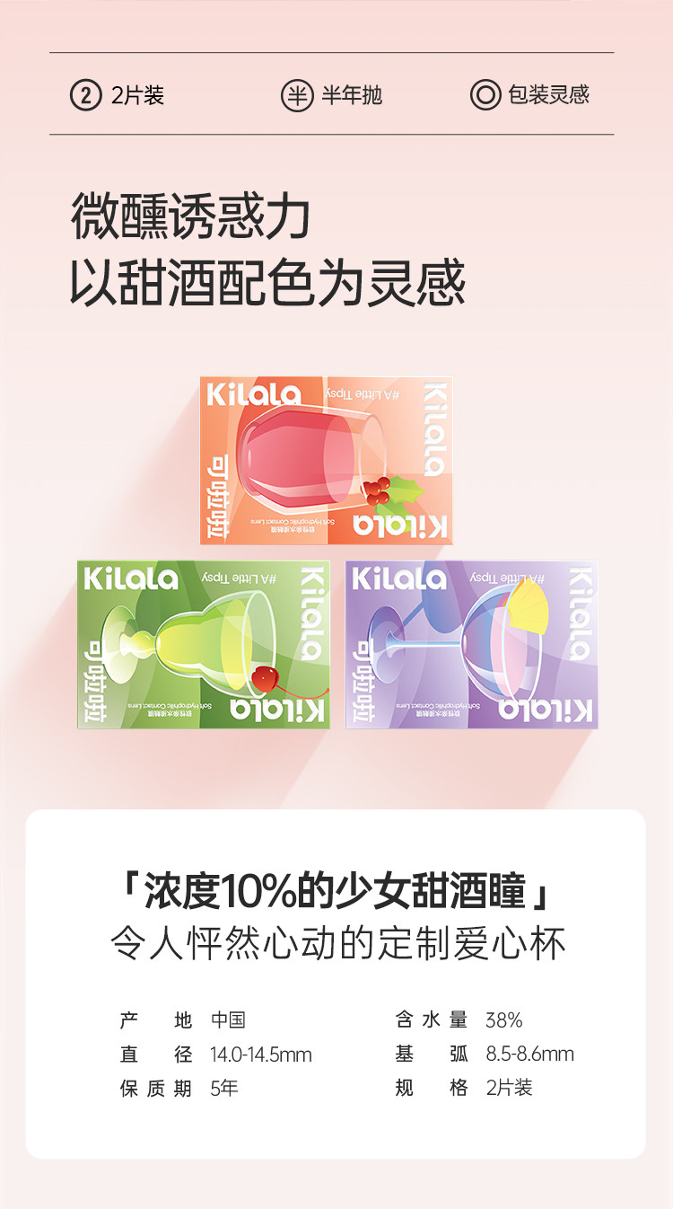 可啦啦 【人气美瞳】小甜酒美瞳半年抛近视隐形眼镜半年抛2片