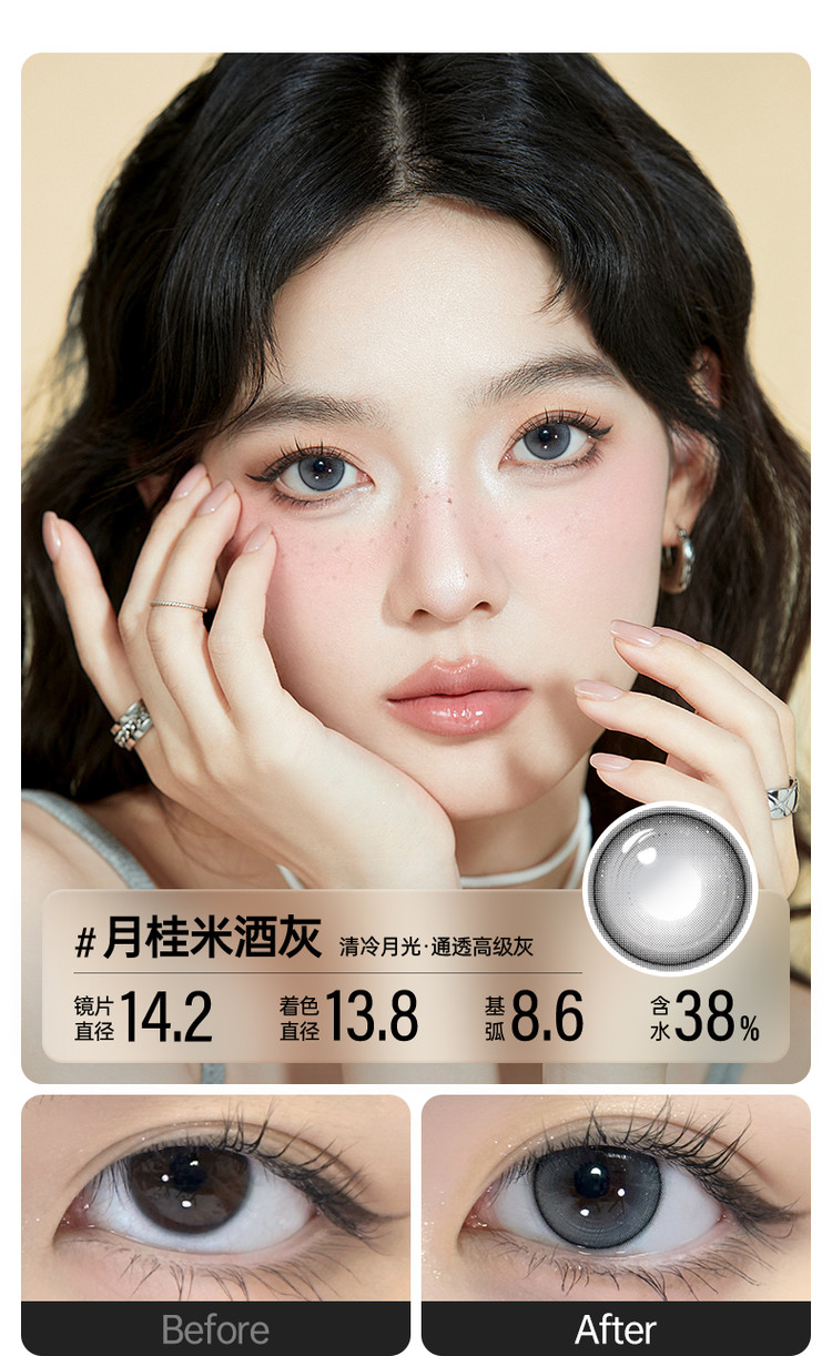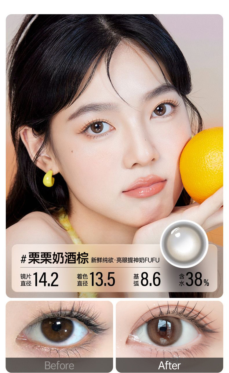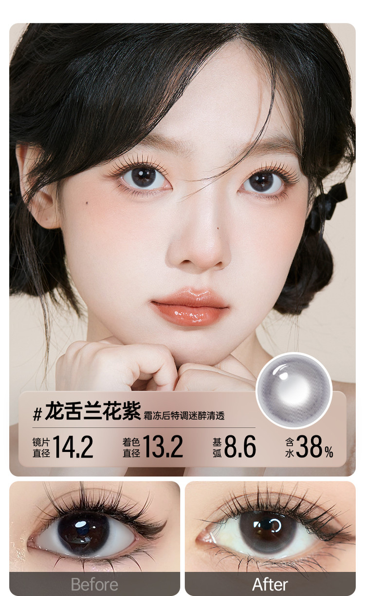 眼镜很水润戴一天都不会觉得有不舒服或者干燥,价格优惠,眼镜修饰的特别漂亮,我的左边眼镜就是佩戴后的效果,比右边眼睛还要有神