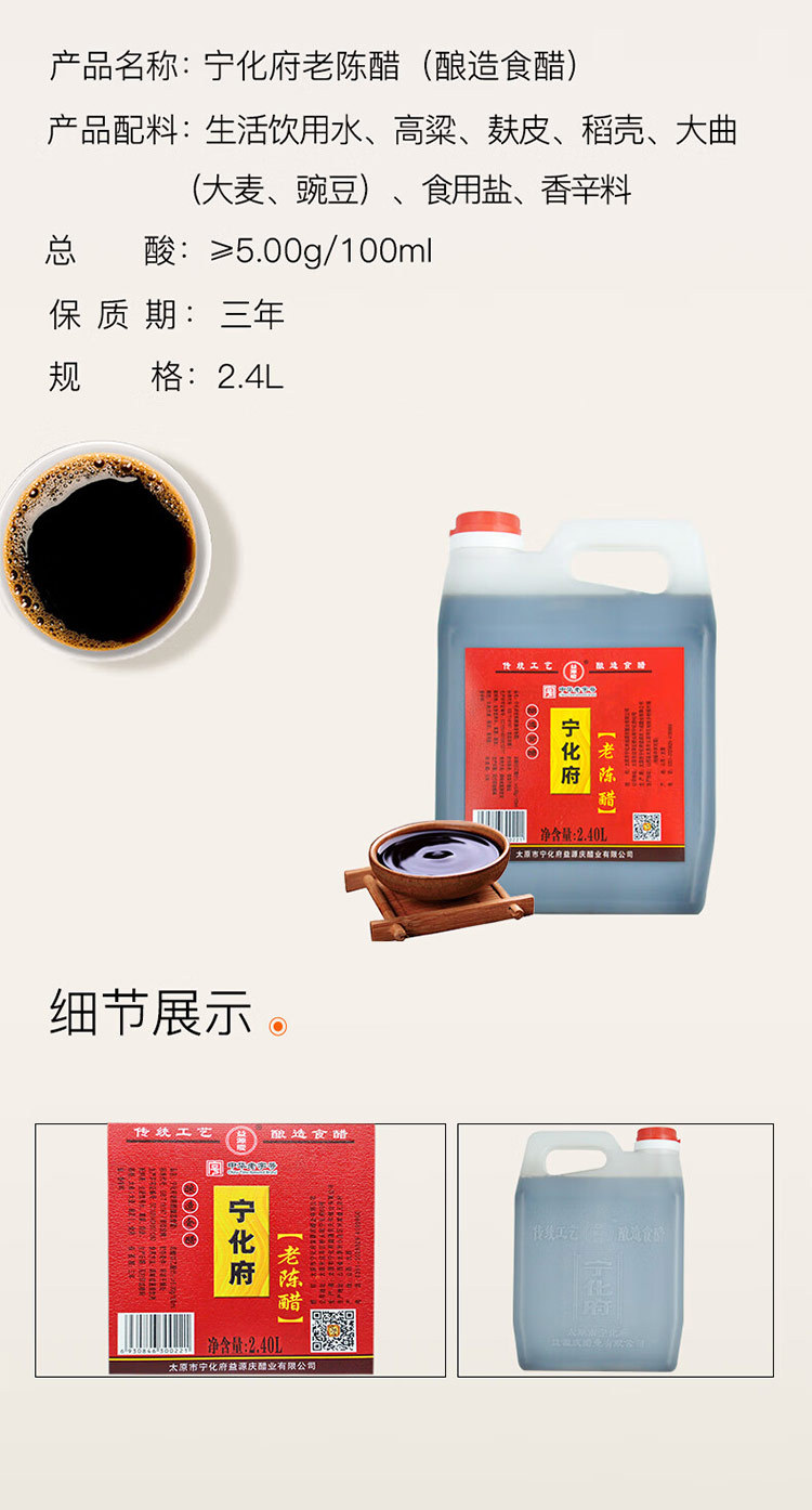 宁化府 【非遗】山西宁化府老陈醋精酿2.4L正宗山西特产含醋漏斗两件套