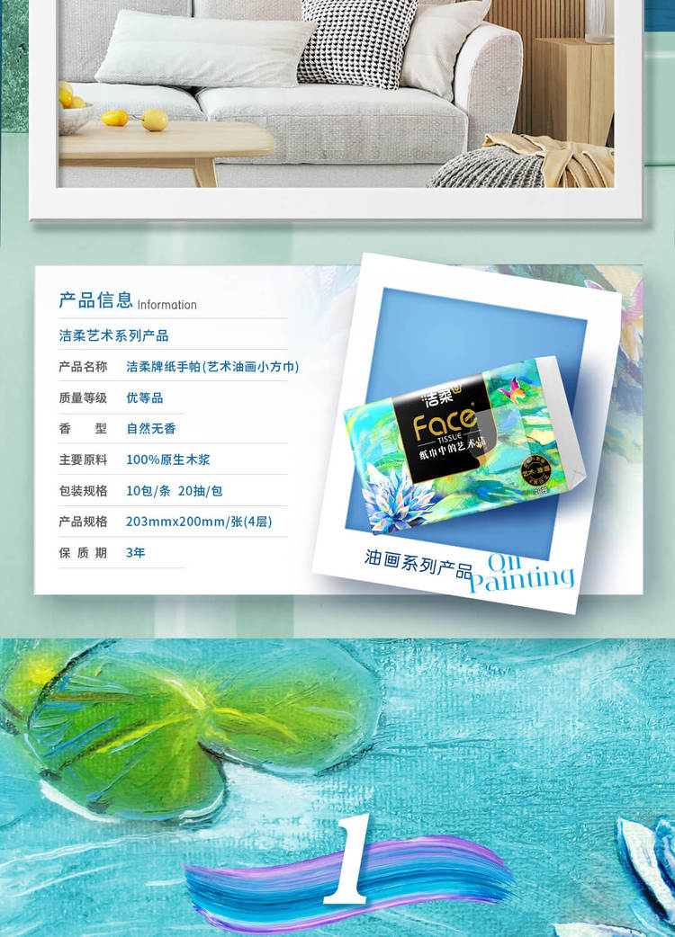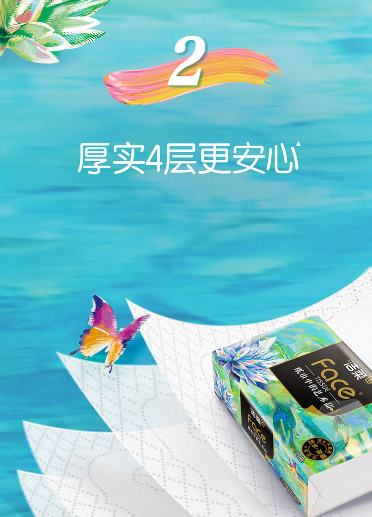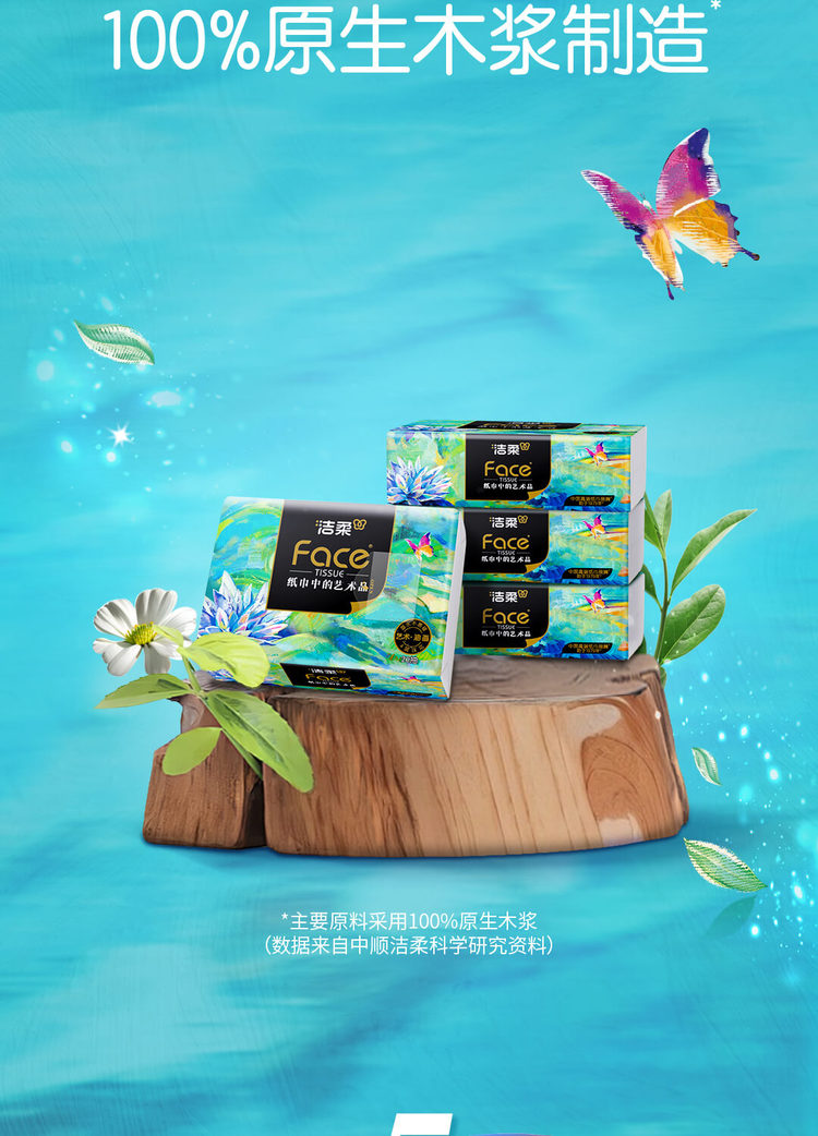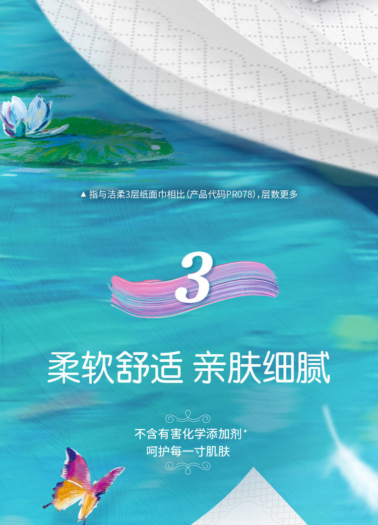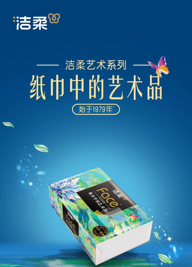 洁柔 4层加厚油画可湿水抽纸便携抽纸10包/18包80抽大包软抽