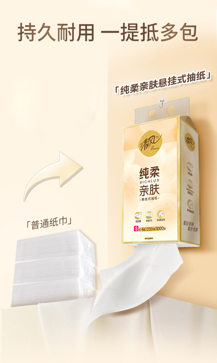 清风 【10大提2500抽】四层加厚便利抽挂抽纸悬挂式餐巾卫生纸巾家用