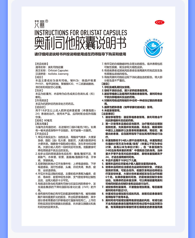 艾丽 30粒奥利司他胶囊减肥减肥药减重减脂otc男女国药准字男女