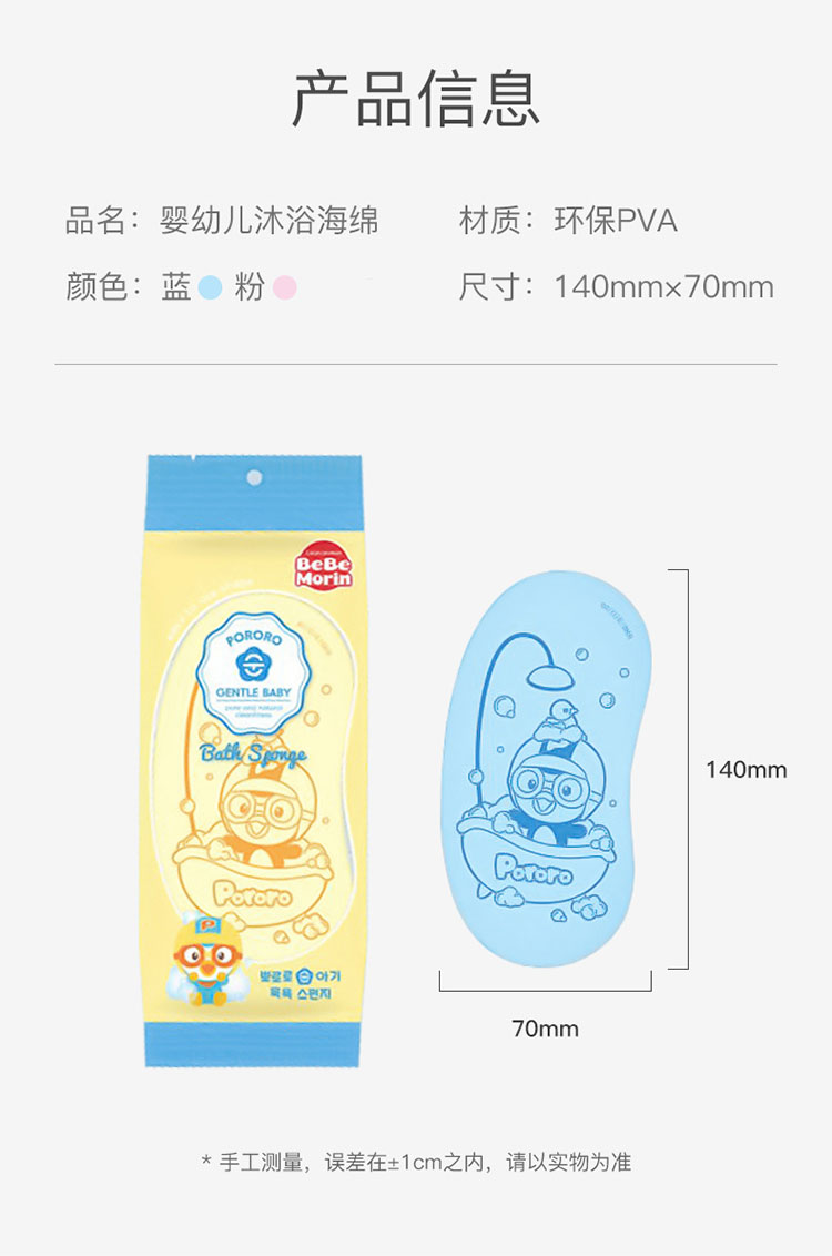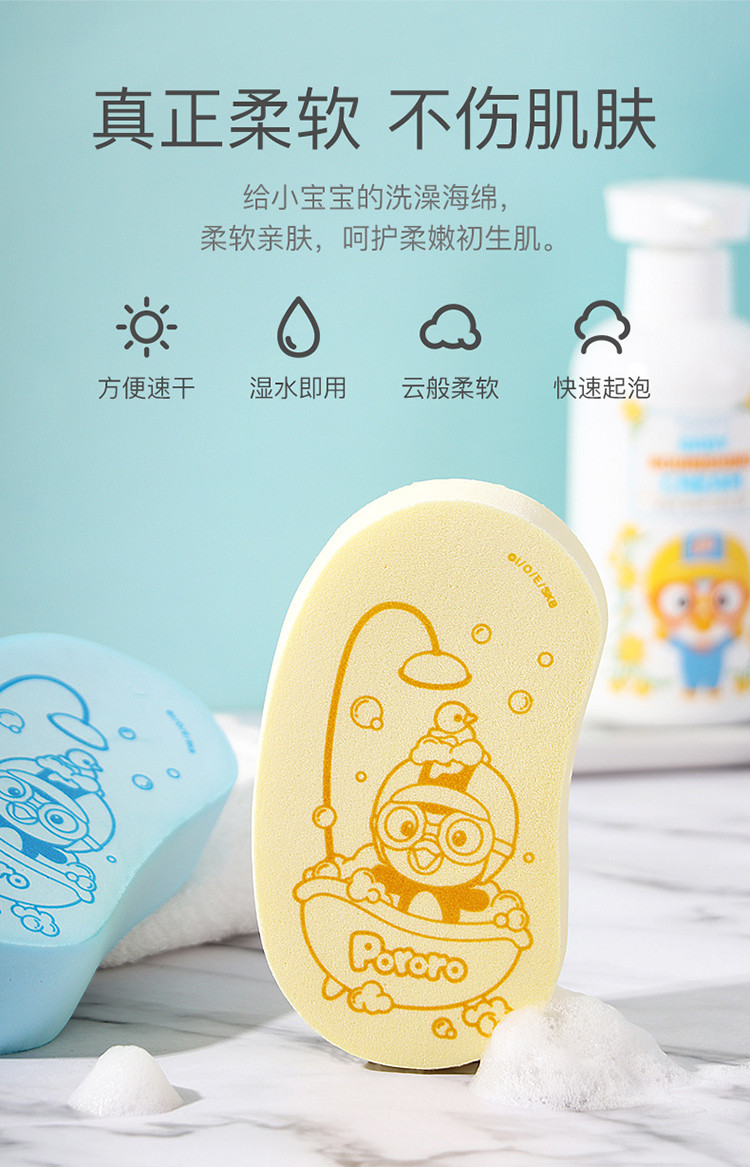 Pororo 婴儿洗澡海绵宝宝搓澡神器新生儿童沐浴巾搓泥绵擦去垢男女