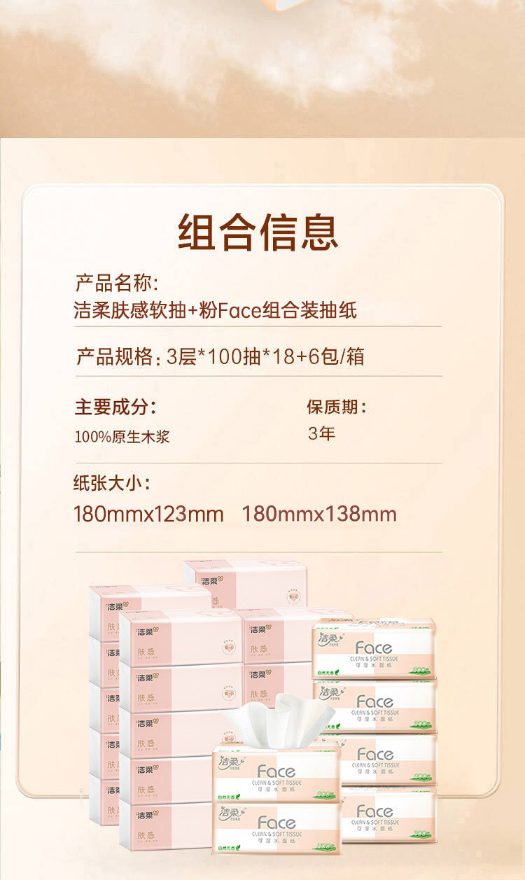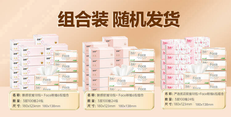 洁柔 【爆款组合24包】粉face软抽纸巾家用可湿水卫生纸餐巾纸实惠整箱
