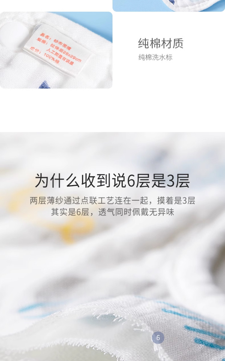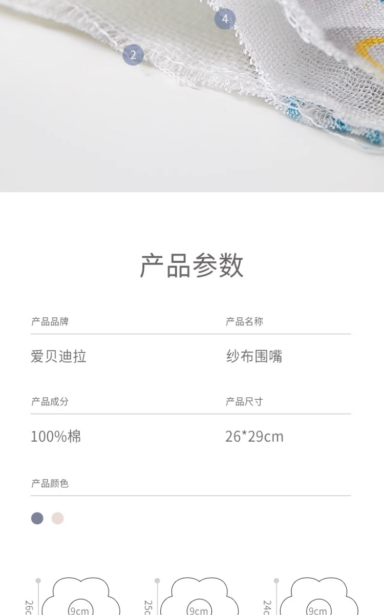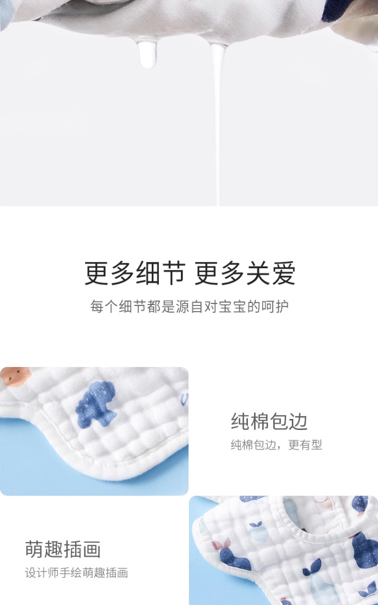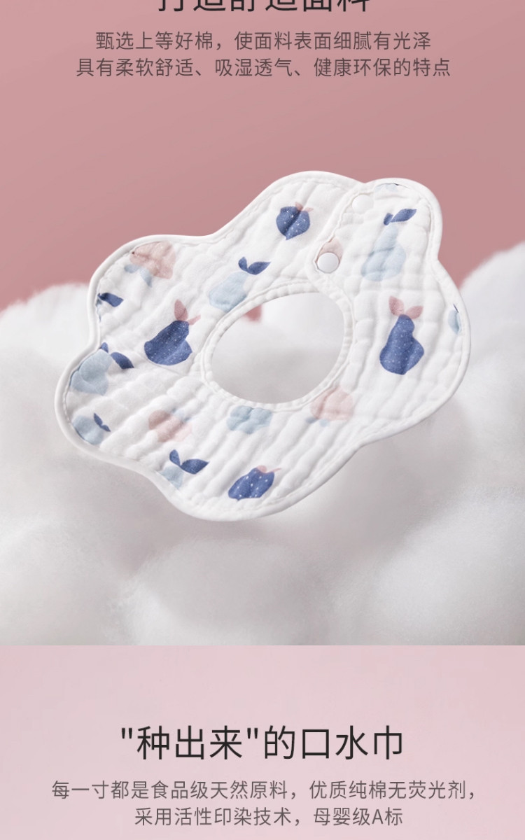 爱贝迪拉 婴儿纯棉纱布围嘴宝宝口水巾新生儿吸水吐奶围兜春秋四季饭兜