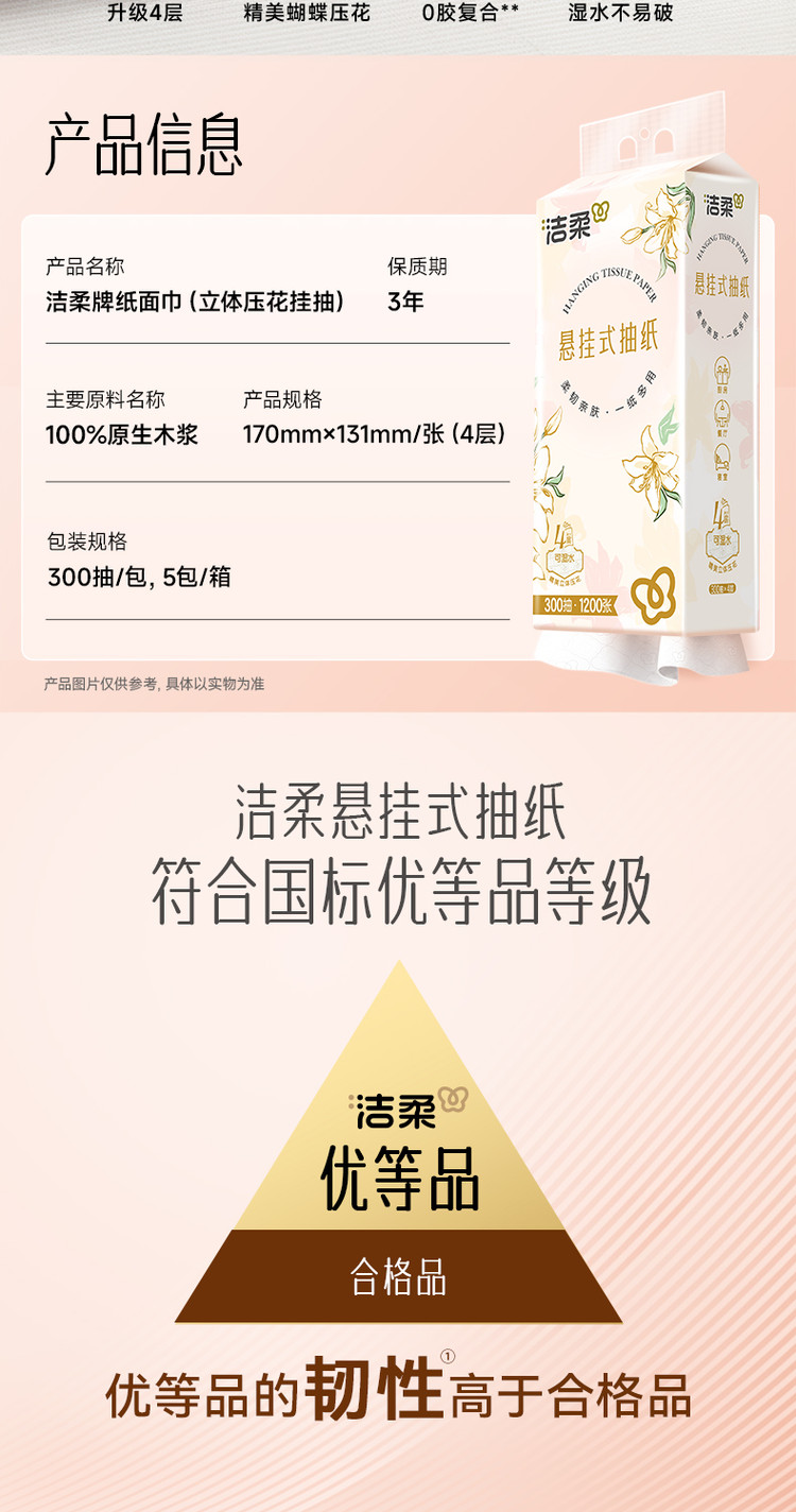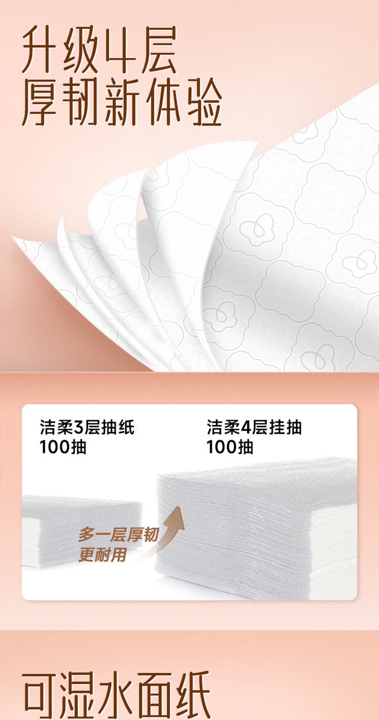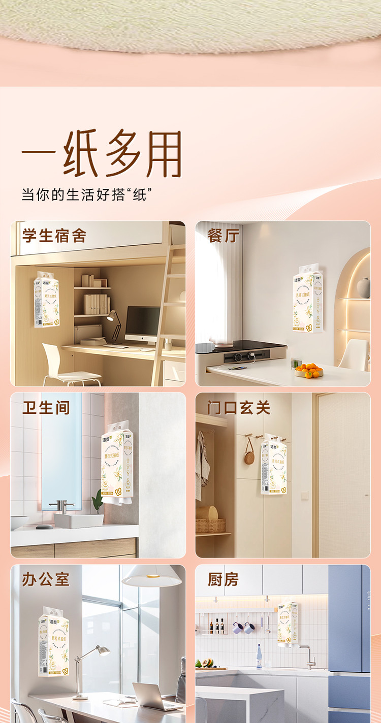 洁柔悬挂抽纸太实用!1500抽大容量,四层厚实柔韧,湿水不易破、不掉屑。随心挂不占空间,抽取顺畅,家用超省心,性价比高,无限回购!