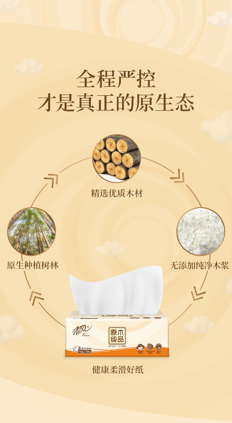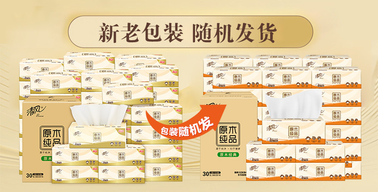 清风 【30包装】清风原木抽纸整箱便捷卫生纸擦手纸餐巾纸实惠家用