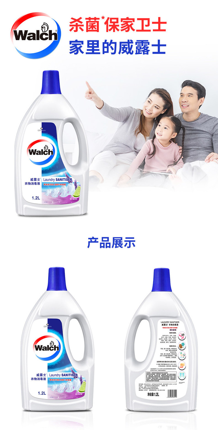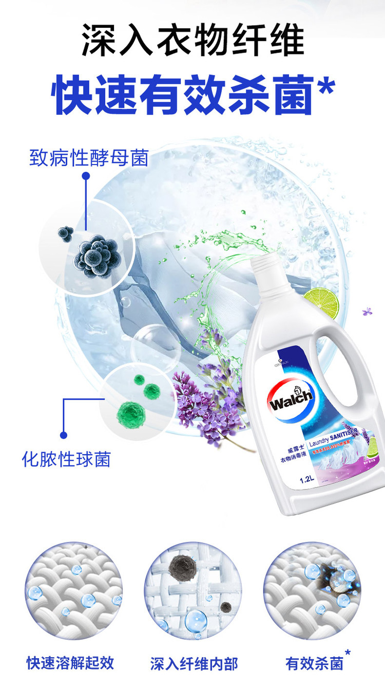 walch 威露士衣物消毒液除菌液1.2L深入衣物纤维深层有效杀菌99.999%