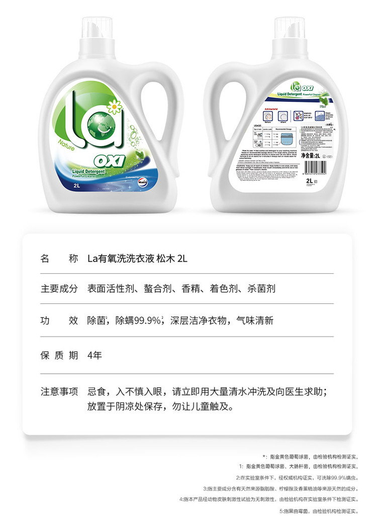 la La有氧洗威露士除菌洗衣液2L+1L*2+内衣洗衣液300ml 除螨99.9%