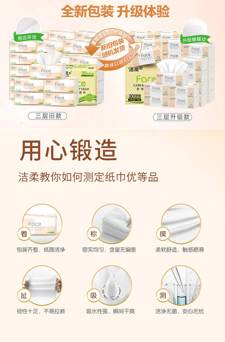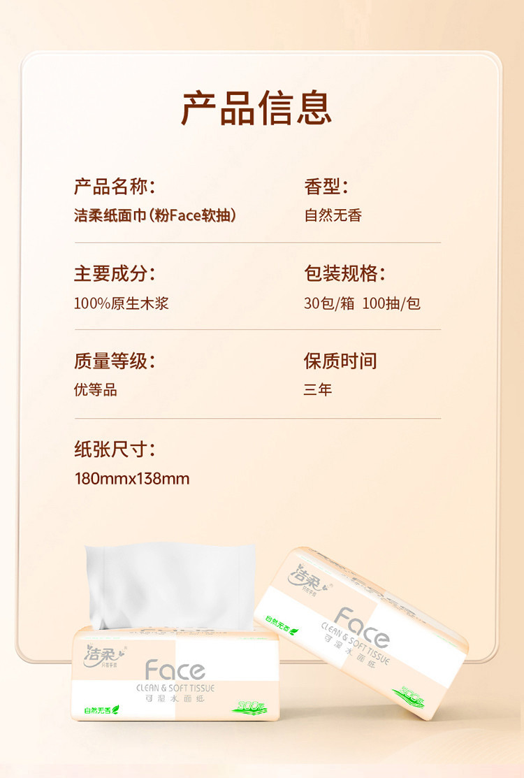 洁柔 【镇店之宝】洁柔粉face抽纸30/24/10包餐巾实惠家用面巾卫生纸