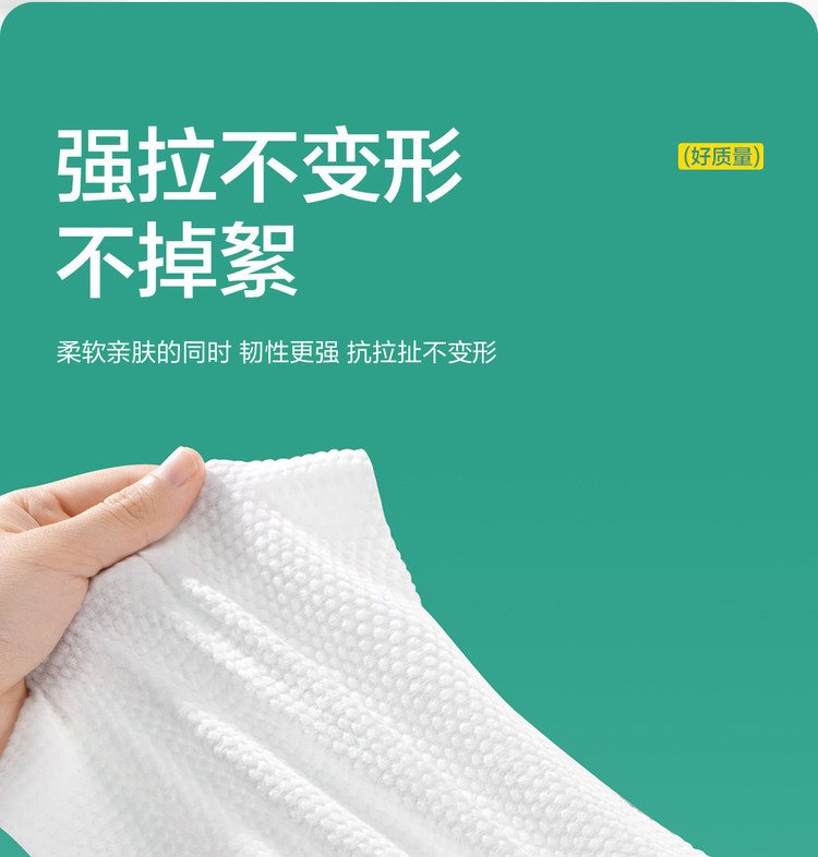 首先材质真的绝了!它是加大加厚的设计,拿在手里沉甸甸的很有分量,比普通洗脸巾厚实太多。摸上去是那种软乎乎的纯棉触感,上脸特别温柔,完全没有摩擦感,敏感肌的姐妹完全可以放心冲! 吸水能力超强!洗完脸用一张轻轻按压,脸上的水分瞬间就被吸干了,而且湿水后依然很坚韧,用力拧都不会破,更不会掉絮掉毛。最让我惊喜的是,它即便湿水后还是很有韧性,擦完脸还可以顺手擦个洗手台、镜子,一张搞定多种用途,超级环保! 抽取式设计太方便了!像抽纸巾一样一抽一张,放在洗手间随用随取,不像毛巾那样容易滋生细菌,干净又卫生。自从用了洗脸巾,脸上闭口都少了,真的是一分钱一分货!一巾多用也超值。平时卸妆的时候,用它搭配。