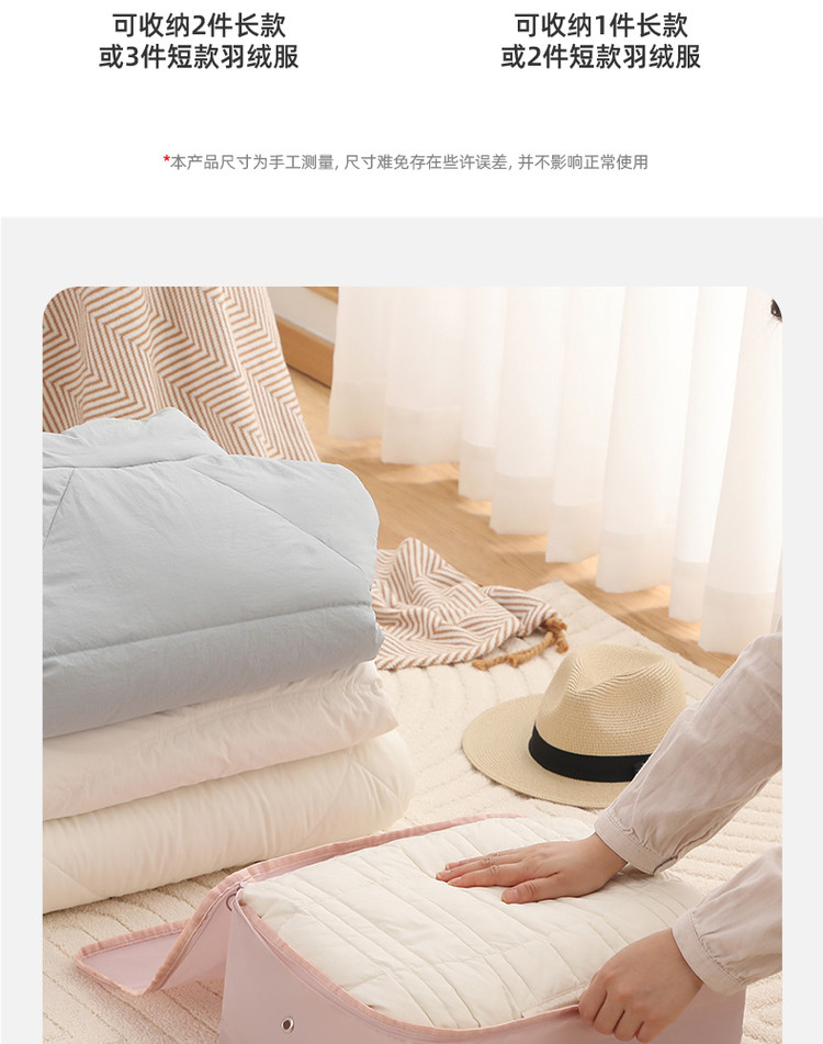 质量看着还行,选的大号,装了三件短羽绒服,线缝都撑开了,长款羽绒服估计只能装1件。收纳后省了不少空间,我的羽绒服大多数是长款的,又回购了。