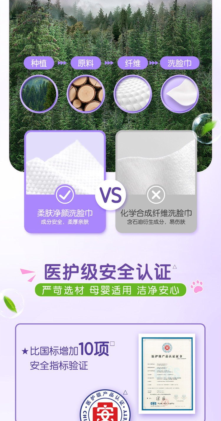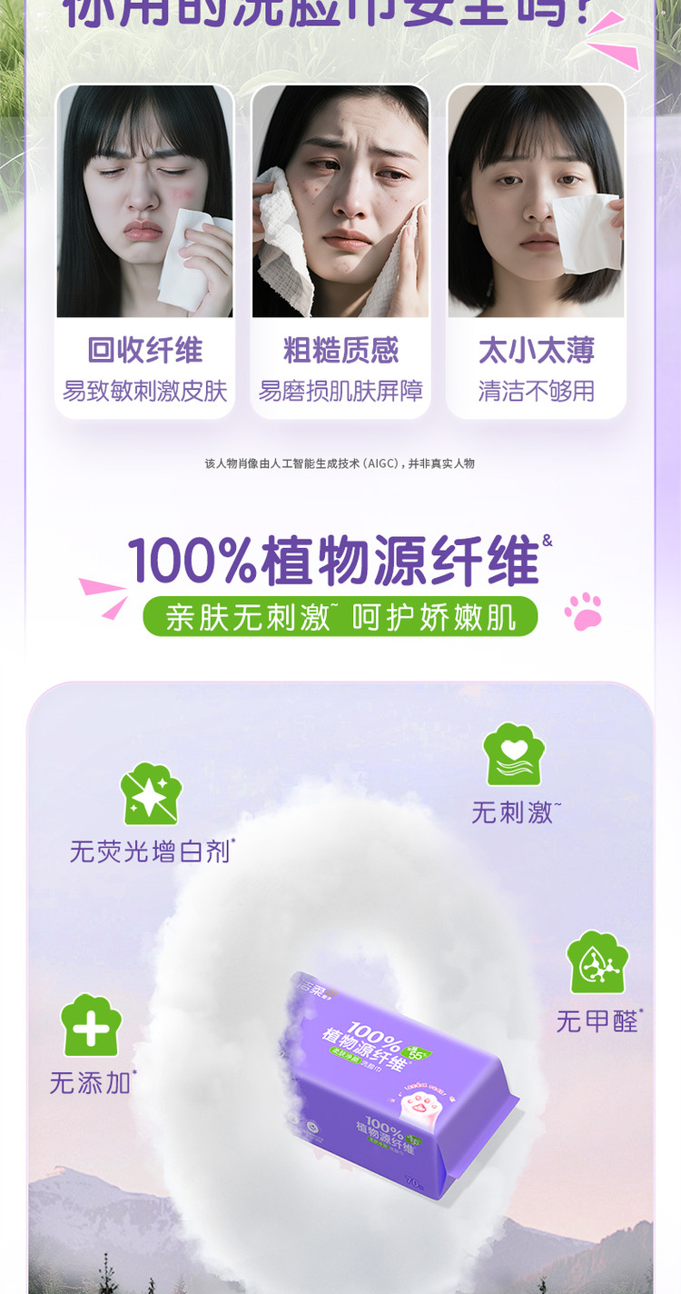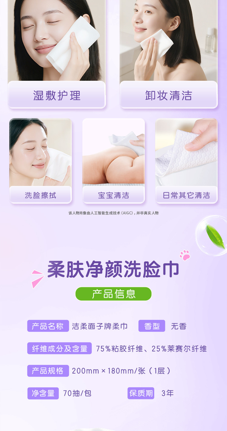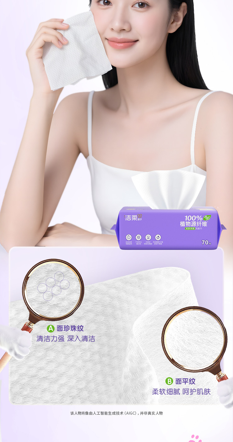 洁柔 【大规格】洁柔洗脸巾洁面巾70抽1/6包绵柔巾擦脸家庭装