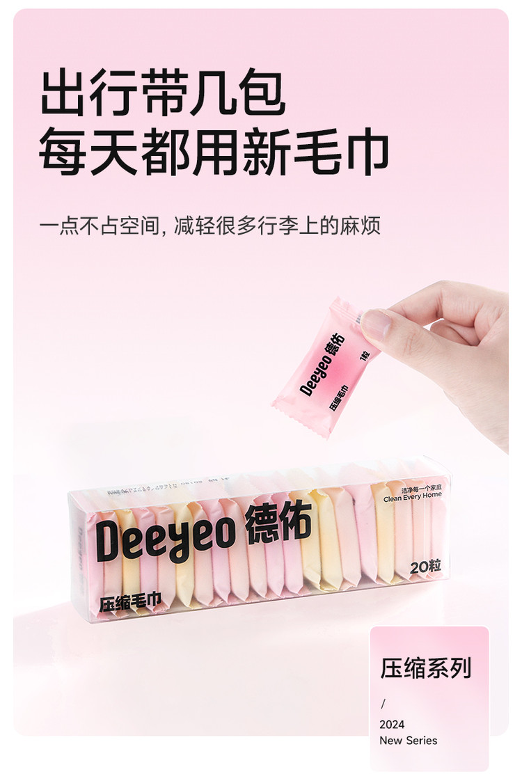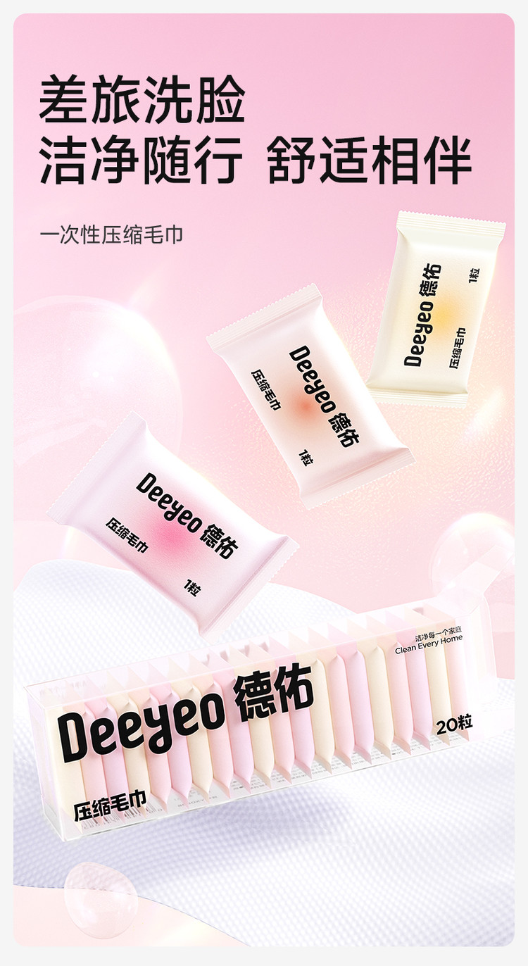 德佑 【出差旅行必备便携20粒】德佑压缩毛巾加大加厚出差旅行装洗脸巾