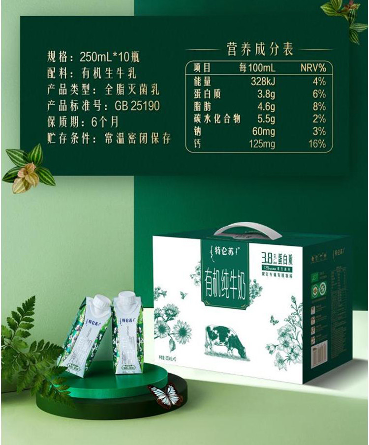 特仑苏 10月产 蒙牛特仑苏有机纯牛奶梦幻盖250ml*10盒