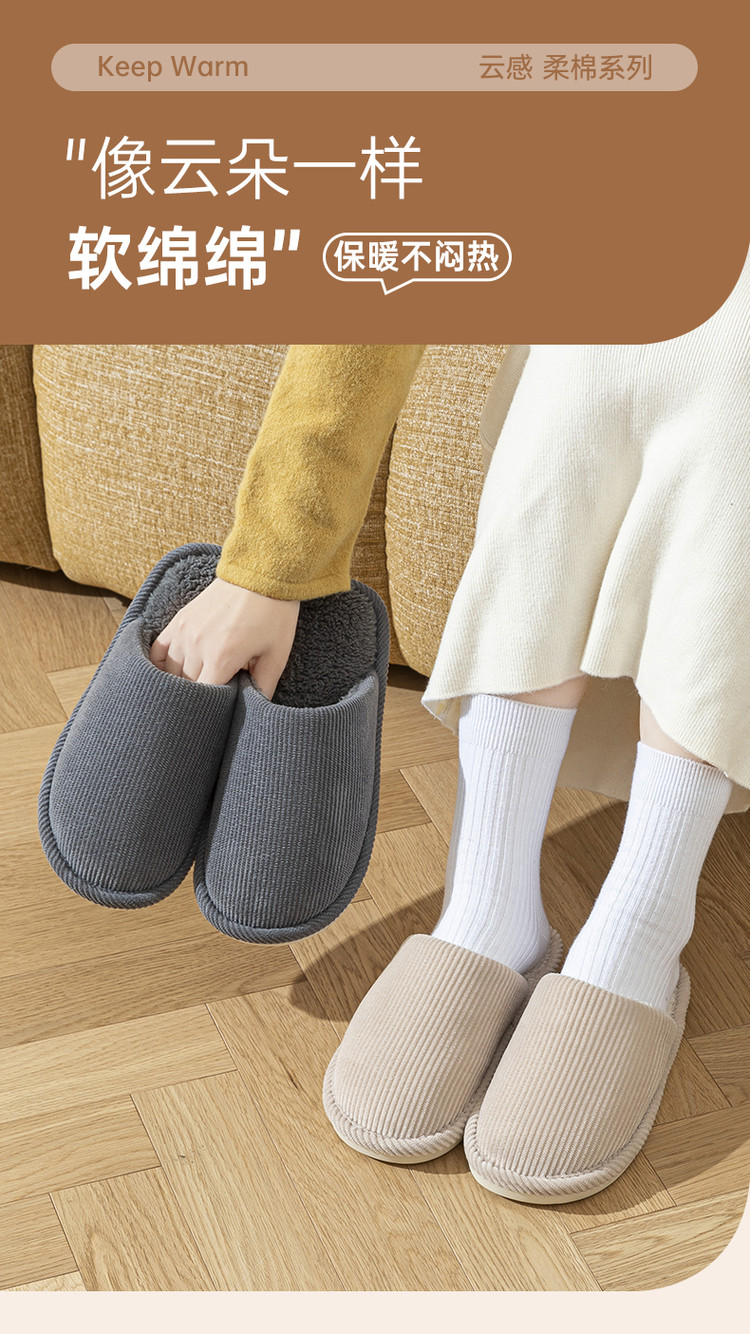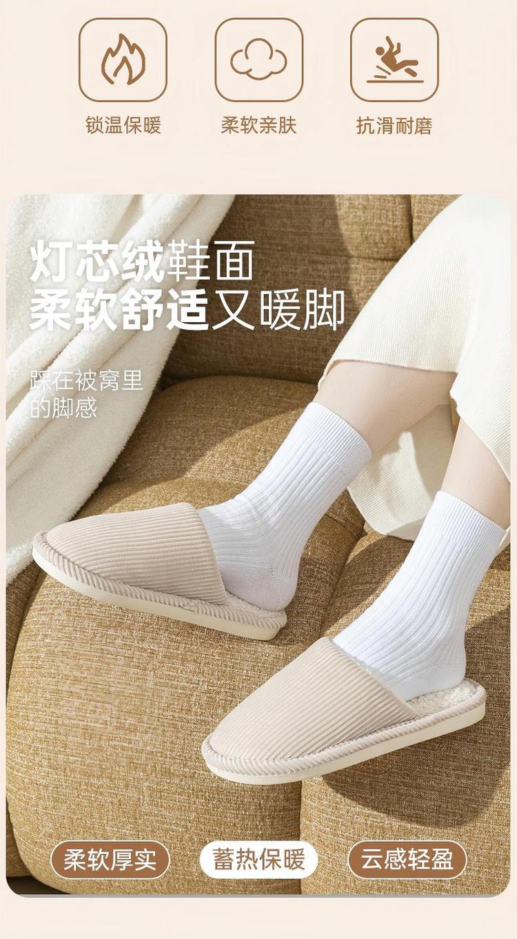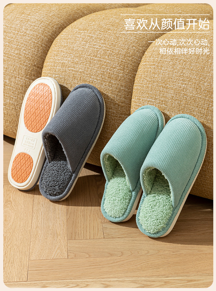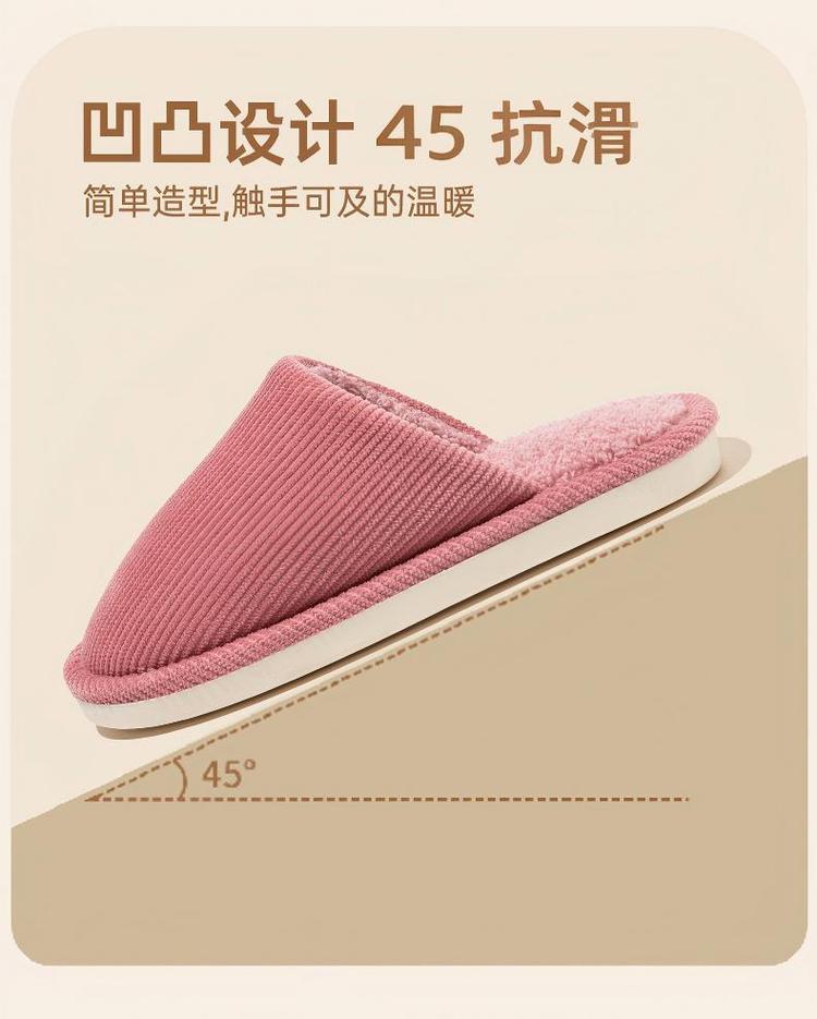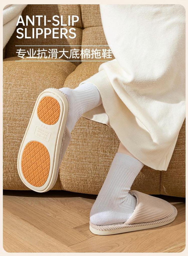 十一步 【断码处理】日式静音棉拖鞋女冬季加绒居家保暖室内厚底情侣简约