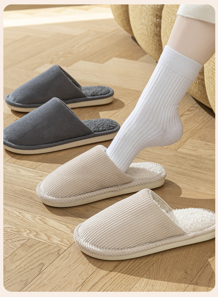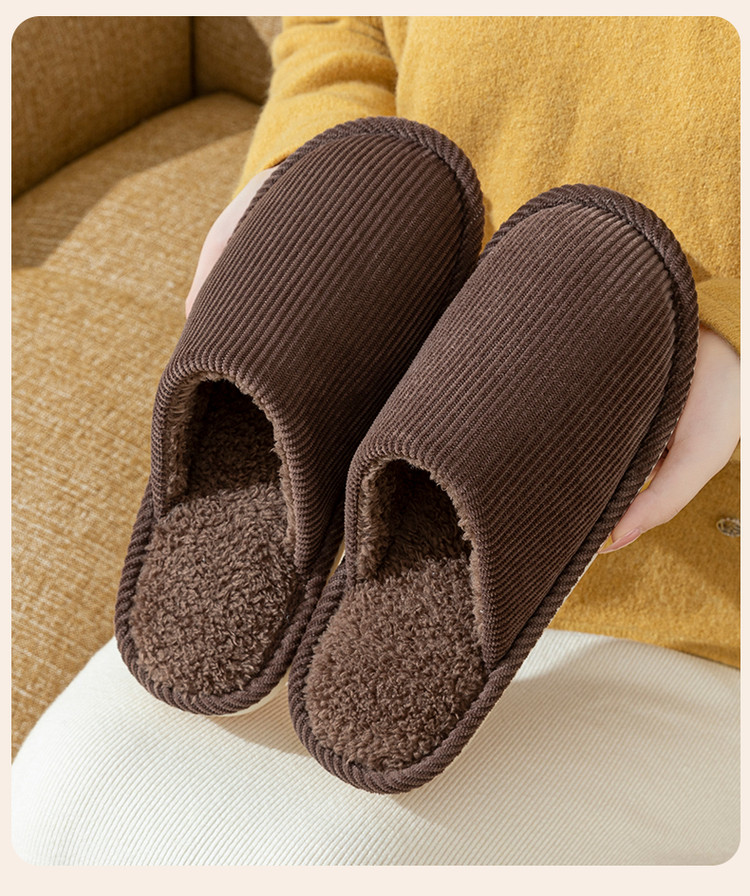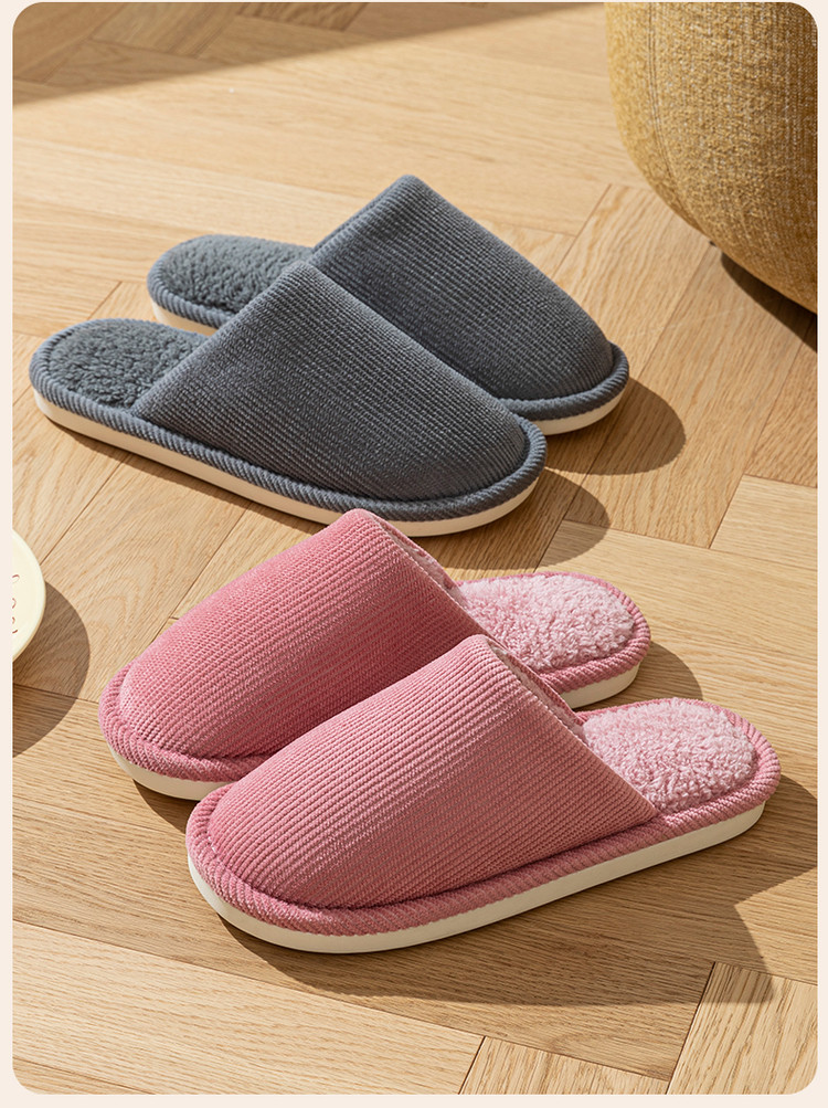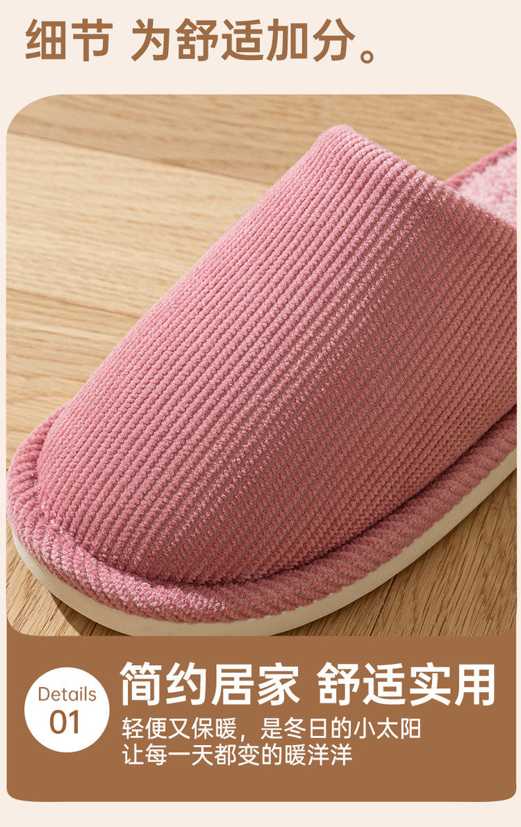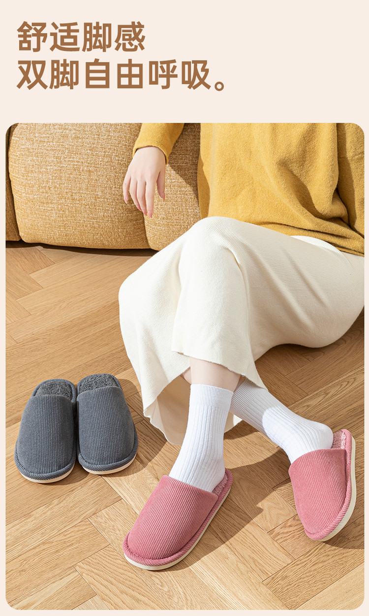 十一步 【断码处理】日式静音棉拖鞋女冬季加绒居家保暖室内厚底情侣简约