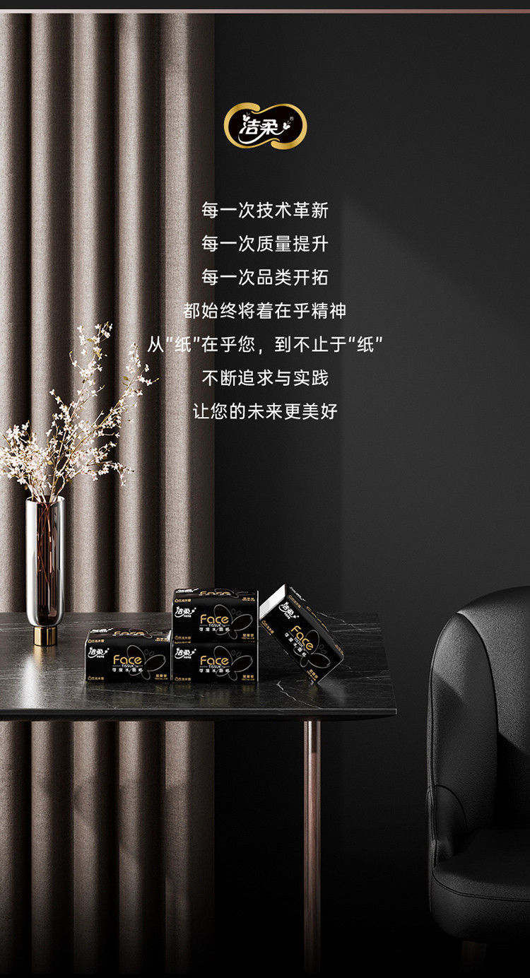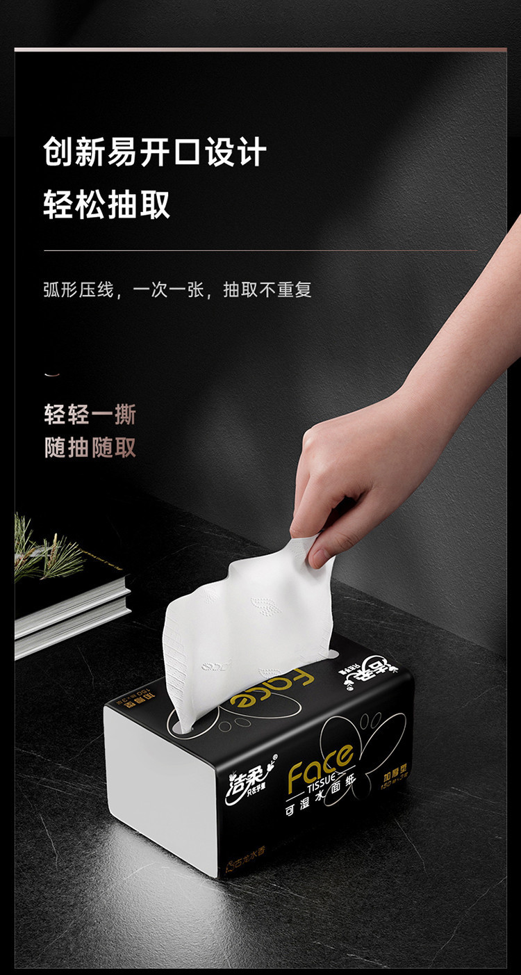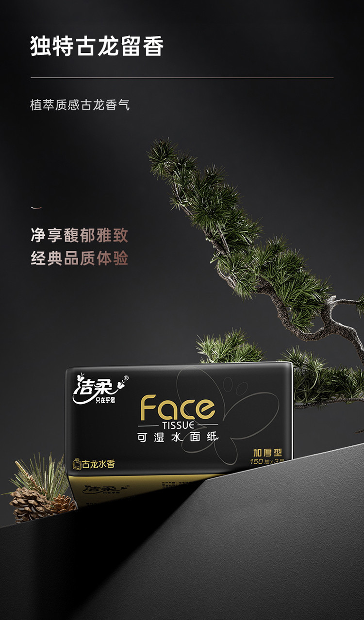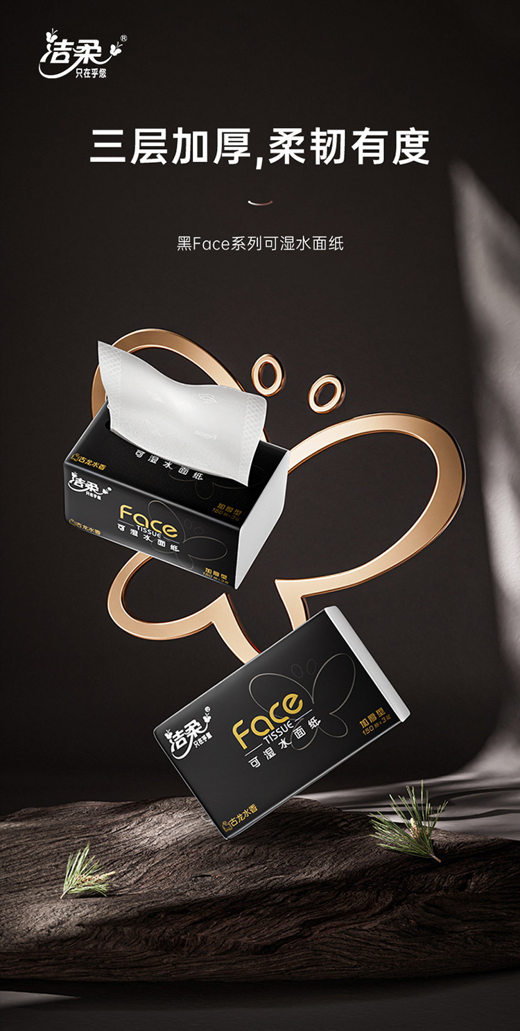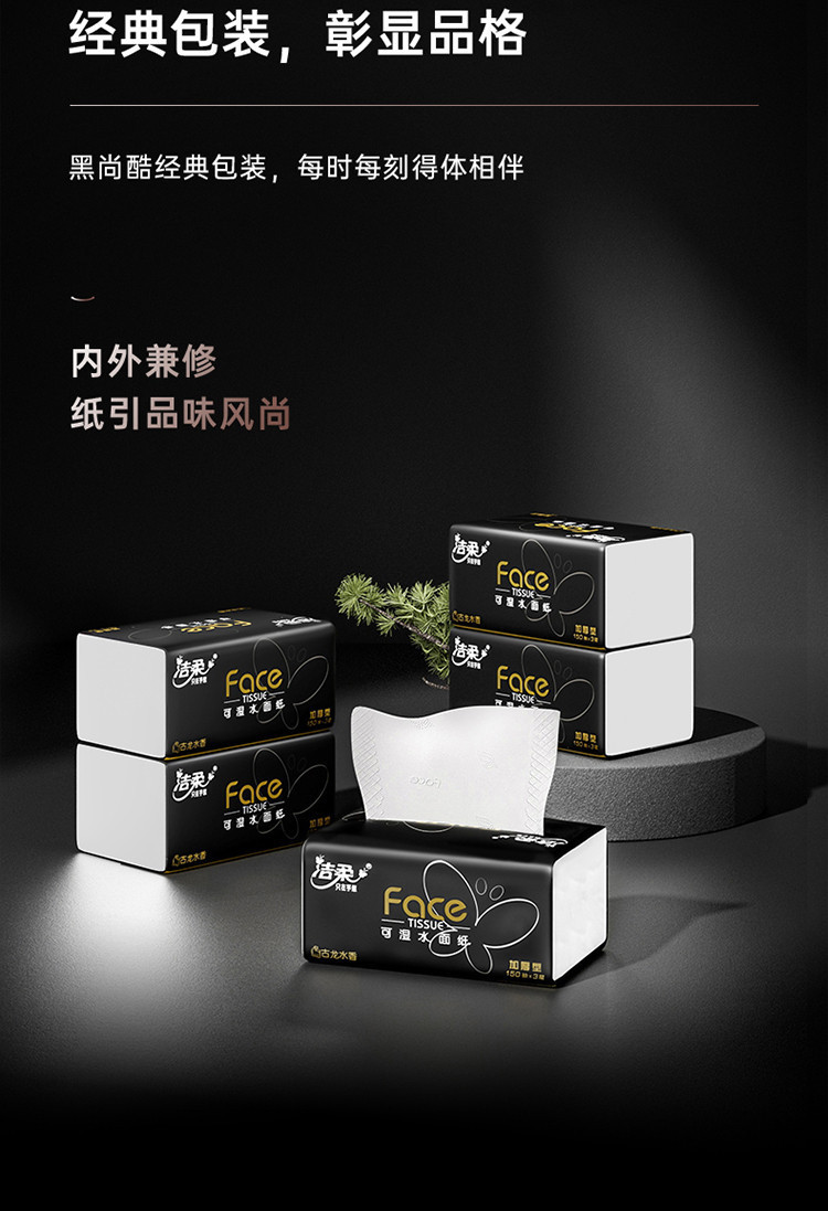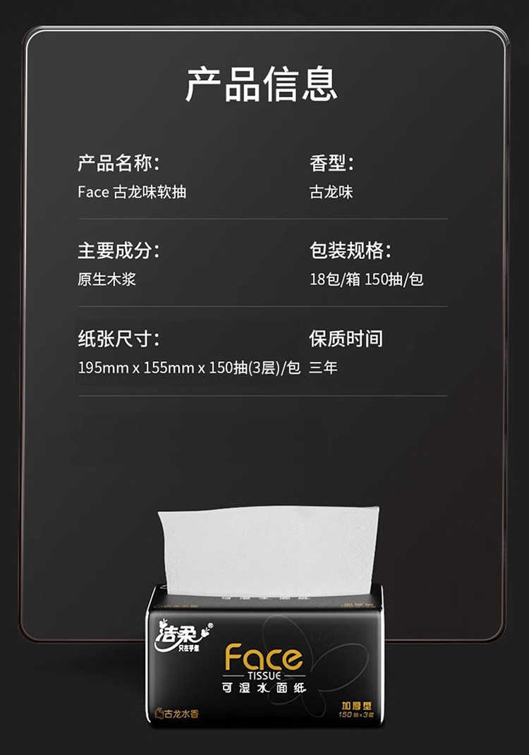 洁柔 【150抽整箱】高端黑Face抽纸加大加厚家用实惠纸巾古龙香面巾纸