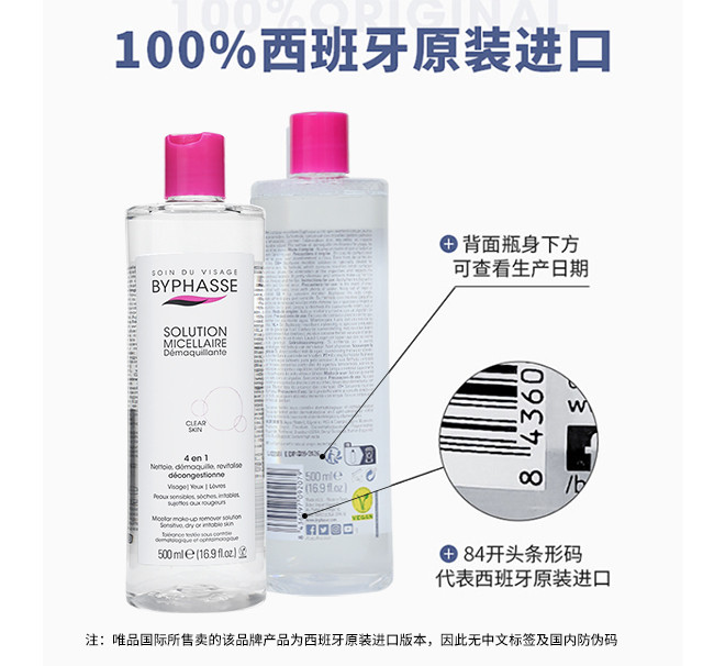 BYPHASSE 【敏肌专用】蓓昂斯卸妆水眼唇脸深层清洁温和不刺激大容量卸妆液