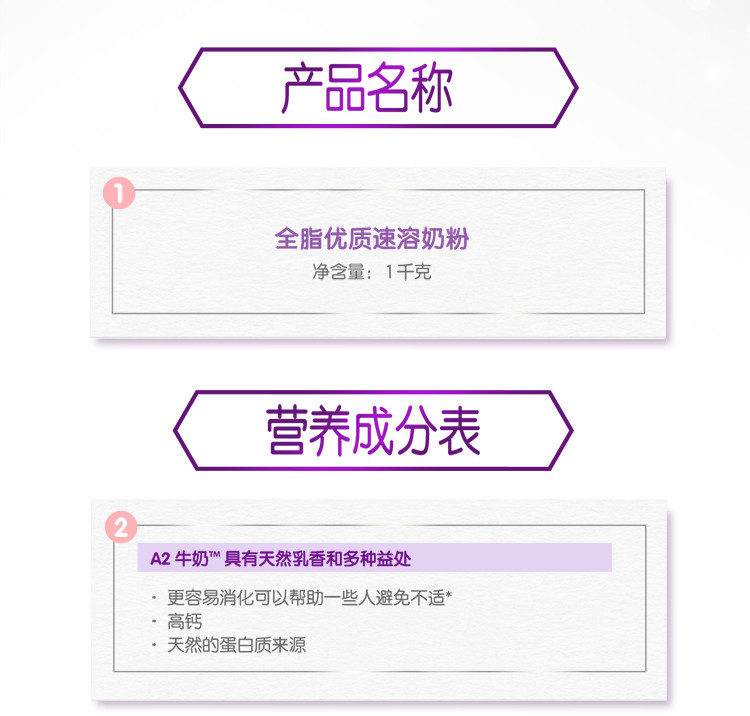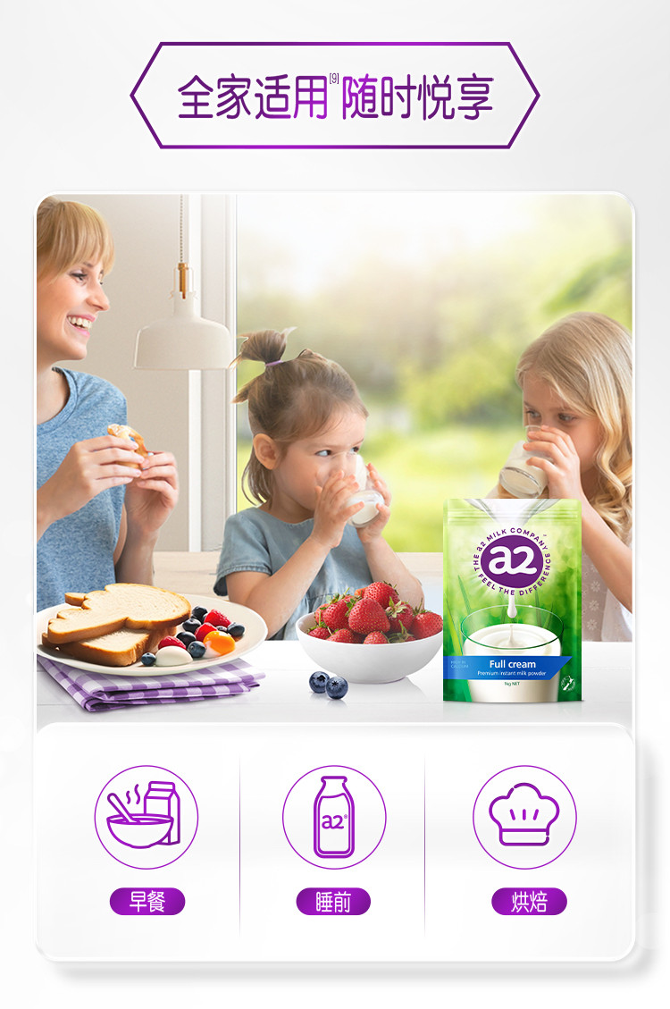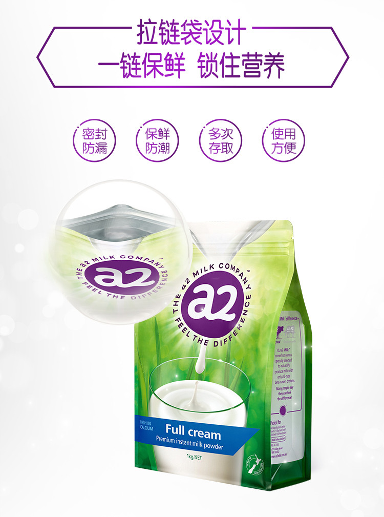 a2 新西兰黄金奶源a2全脂奶粉成人青少年学生高钙高蛋白奶粉1kg