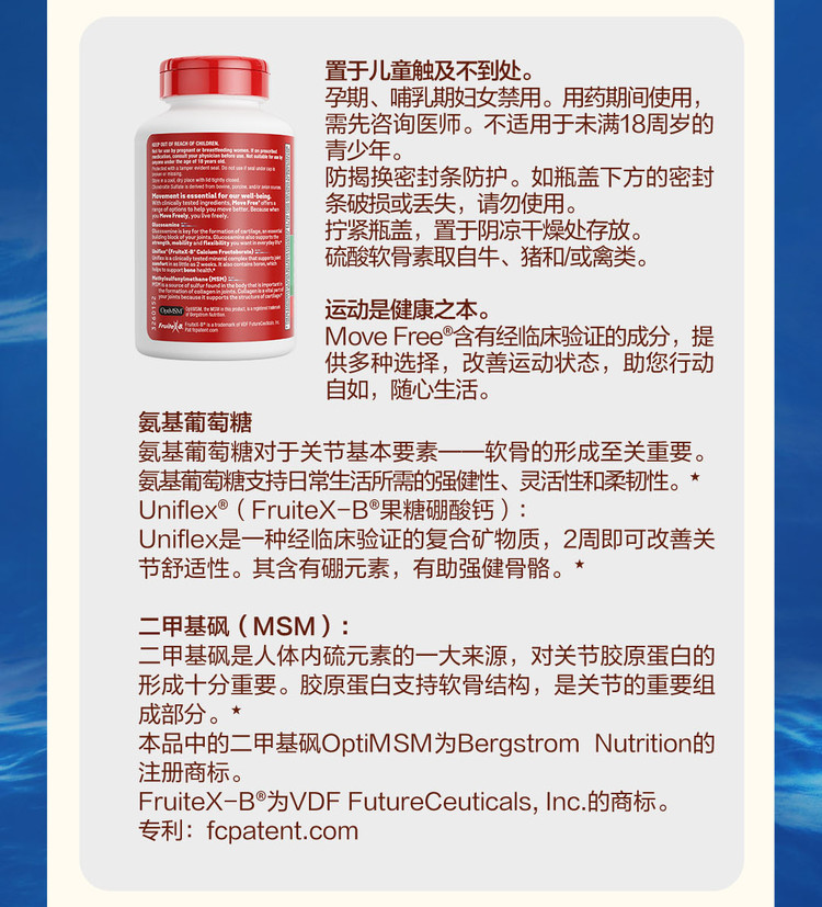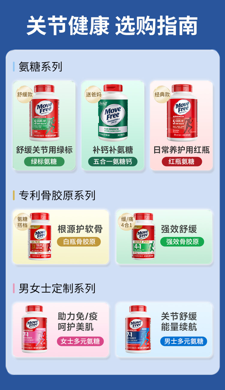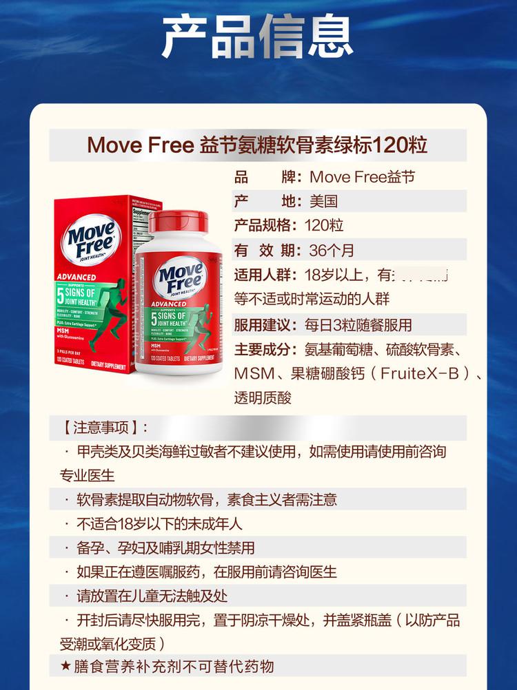 Schiff 益节Move Free氨糖软骨素维骨力氨糖钙片 绿瓶120粒