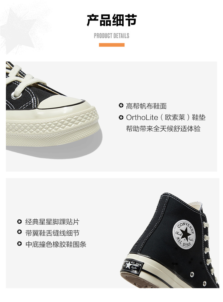 converse 【1970S】经典款三星标男鞋女鞋高帮帆布鞋