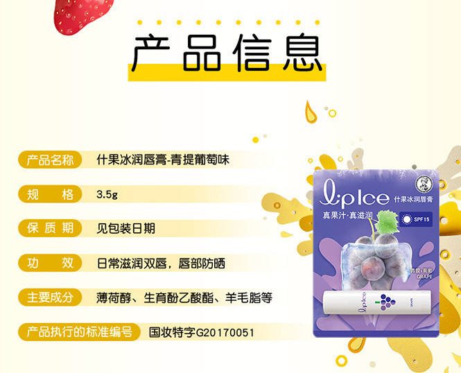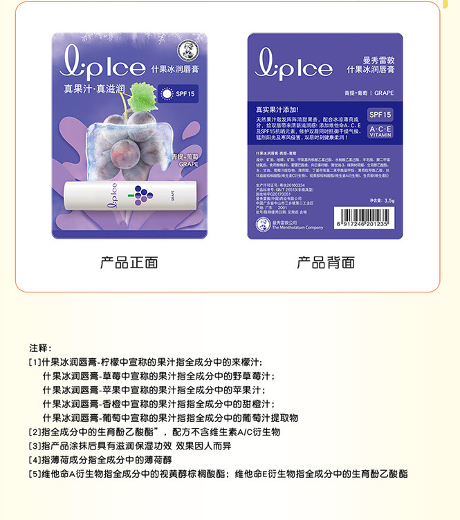 曼秀雷敦 什果冰润唇膏水果味3.5g 持久滋润保湿清香防干裂护唇防晒