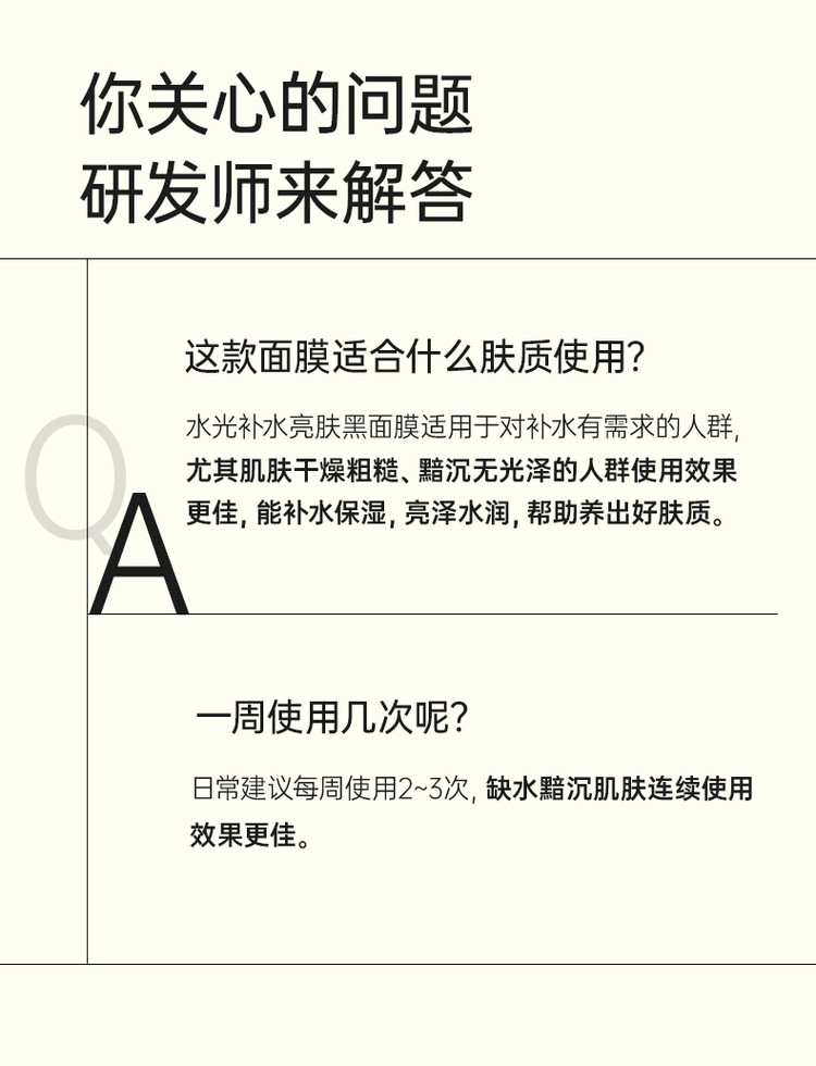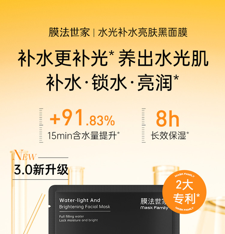 味道描述:膜法世家这款水光黑面膜补水力在线,敷完皮肤水润透亮,黑膜布服帖不闷脸,搭配面霜锁水后,隔天肤色都更均匀,性价比很高
