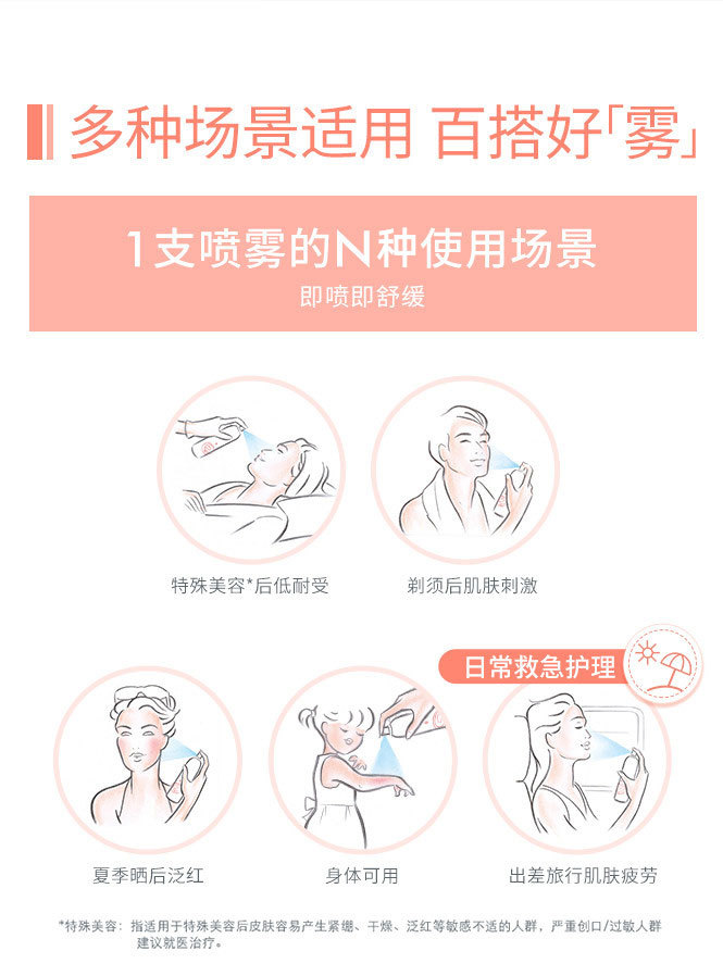 这款补水喷雾效果显著,使用后肌肤立刻水润饱满,喷雾细腻柔和,补水力强,适合日常保湿和妆前定妆 质地清爽不黏腻,吸收快,让皮肤一整天都保持水润状态 便携设计方便随身携带,随时随地为肌肤补充水分 成分温和无刺激,敏感肌使用后也感觉舒适安心 适合各种肤质,尤其对干性肌肤有明显改善效果。 持续使用后,皮肤状态更稳定,水油平衡得到提升。