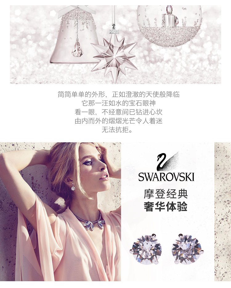 施华洛世奇 钜惠好礼 SOLITAIRE系列圆形闪耀水晶耳钉耳环耳坠