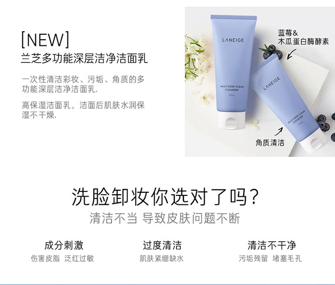 兰芝 多效净肤温和清洁卸妆清洁洗面奶150ML