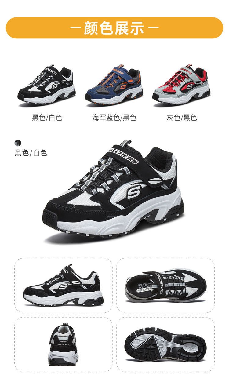 斯凯奇 男中大童|男童鞋魔术贴时尚百搭老爹鞋缓震运动鞋秋冬季